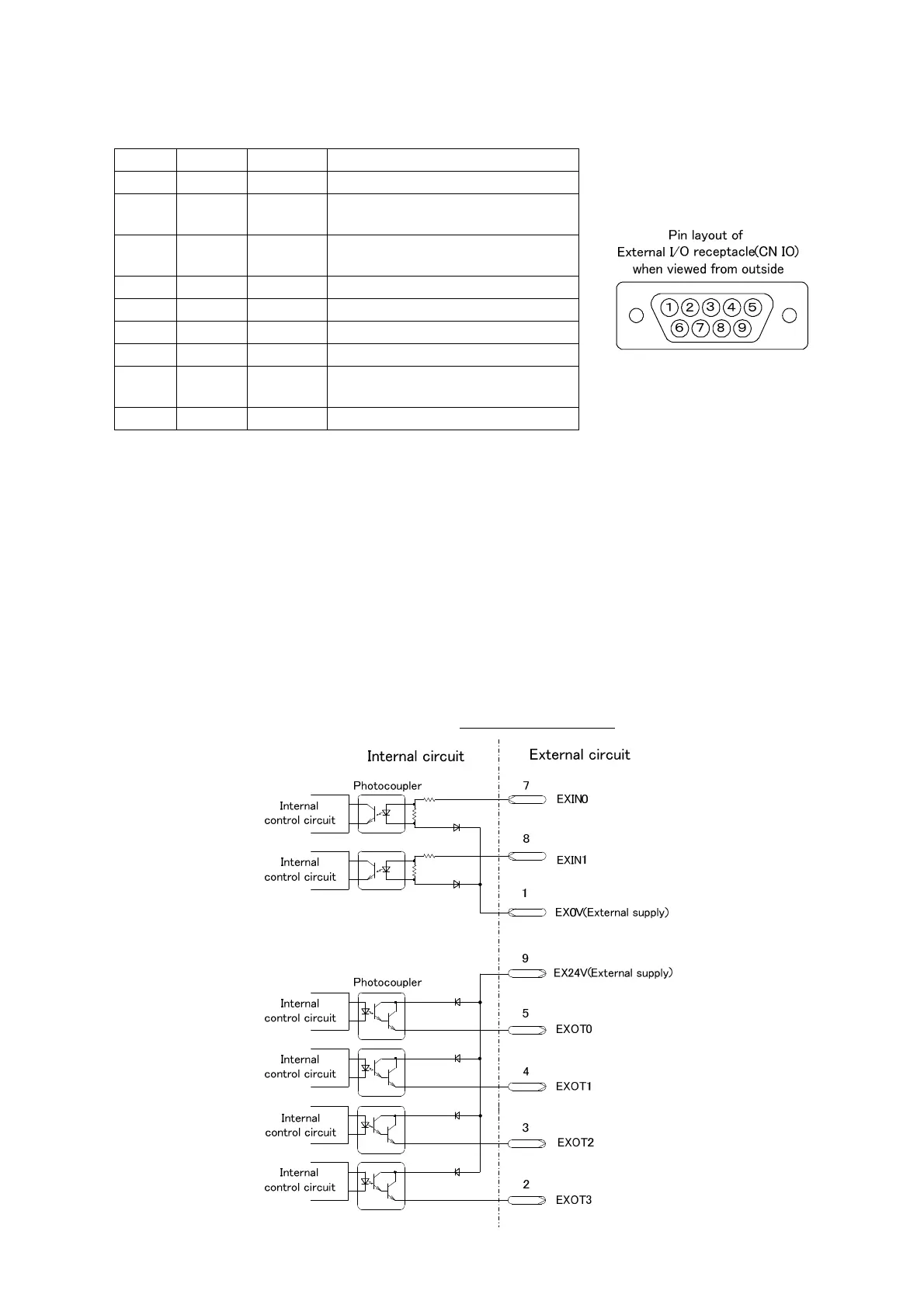 12.2.2. External I/O receptacle (CN IO) pin layout (SOURCE (PNP) type)