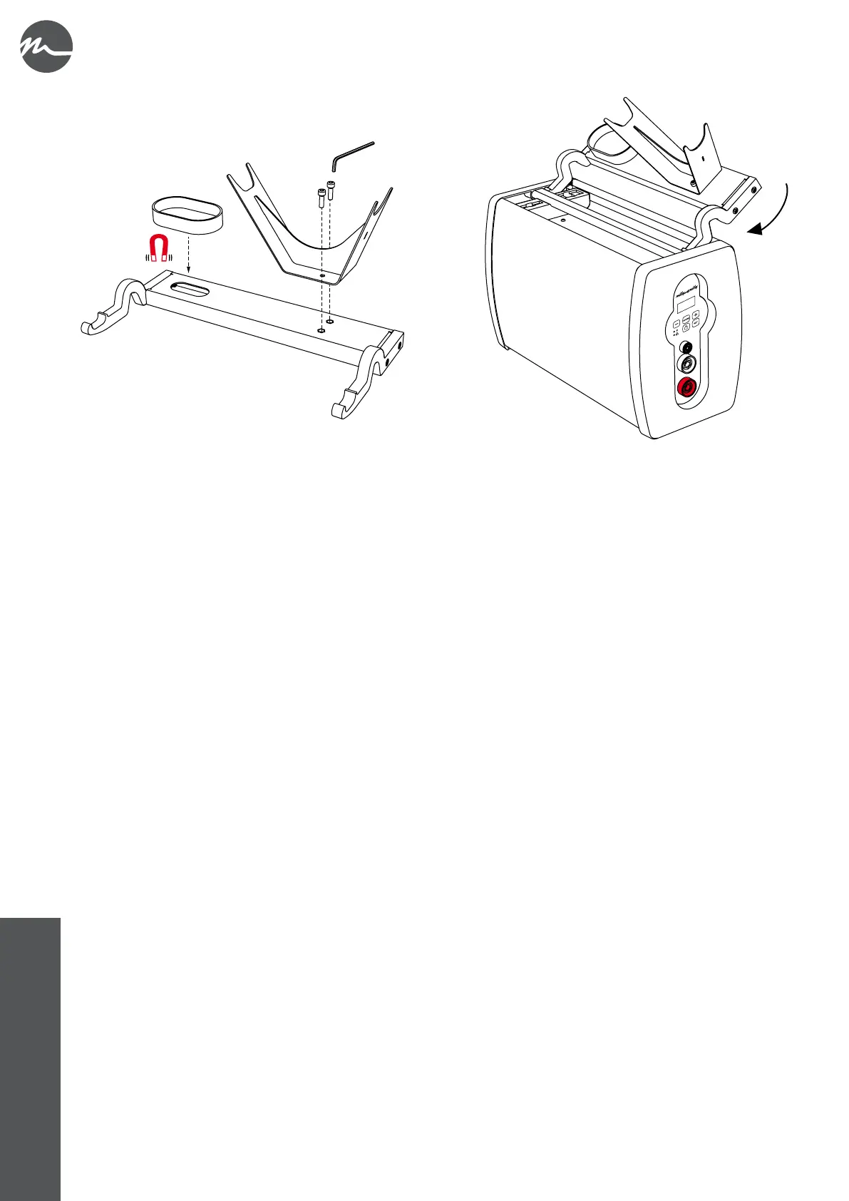 • Once the torch holder assembly is complete, position it on the main unit, inserting the special shaped hooks under the