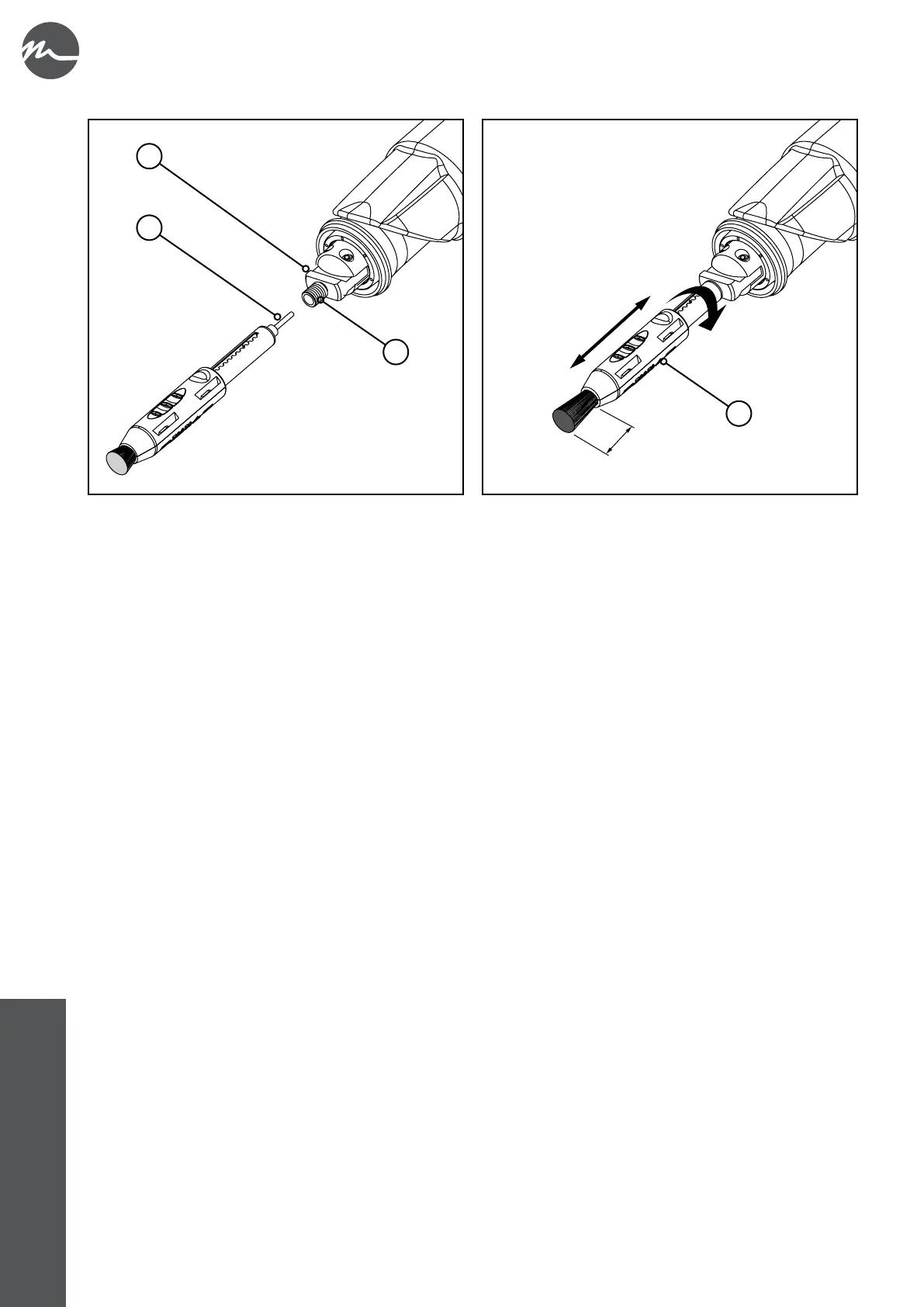 The adapter is equipped with a threaded coupling (B) on which to screw the brush. Be careful when threading the end of