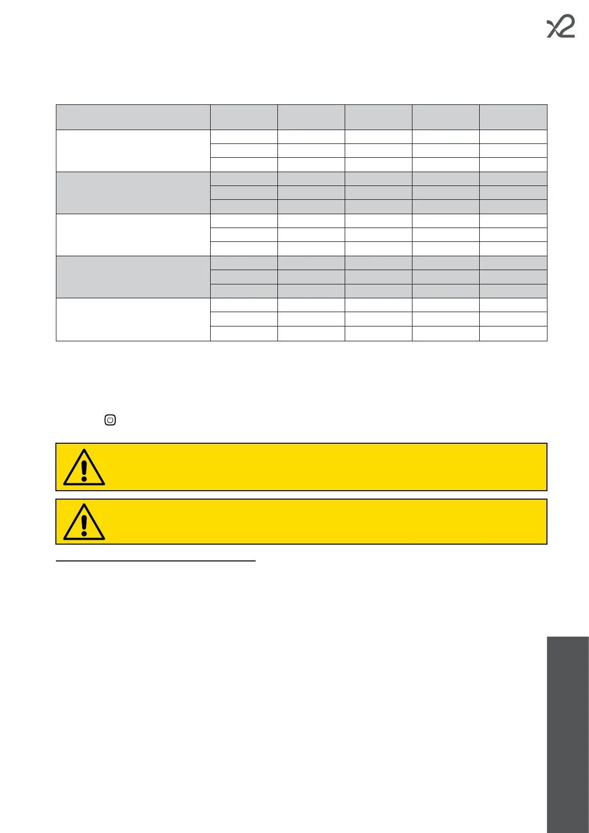 according to the following table, which takes into account both the power supplied by the x2 line device model used, and