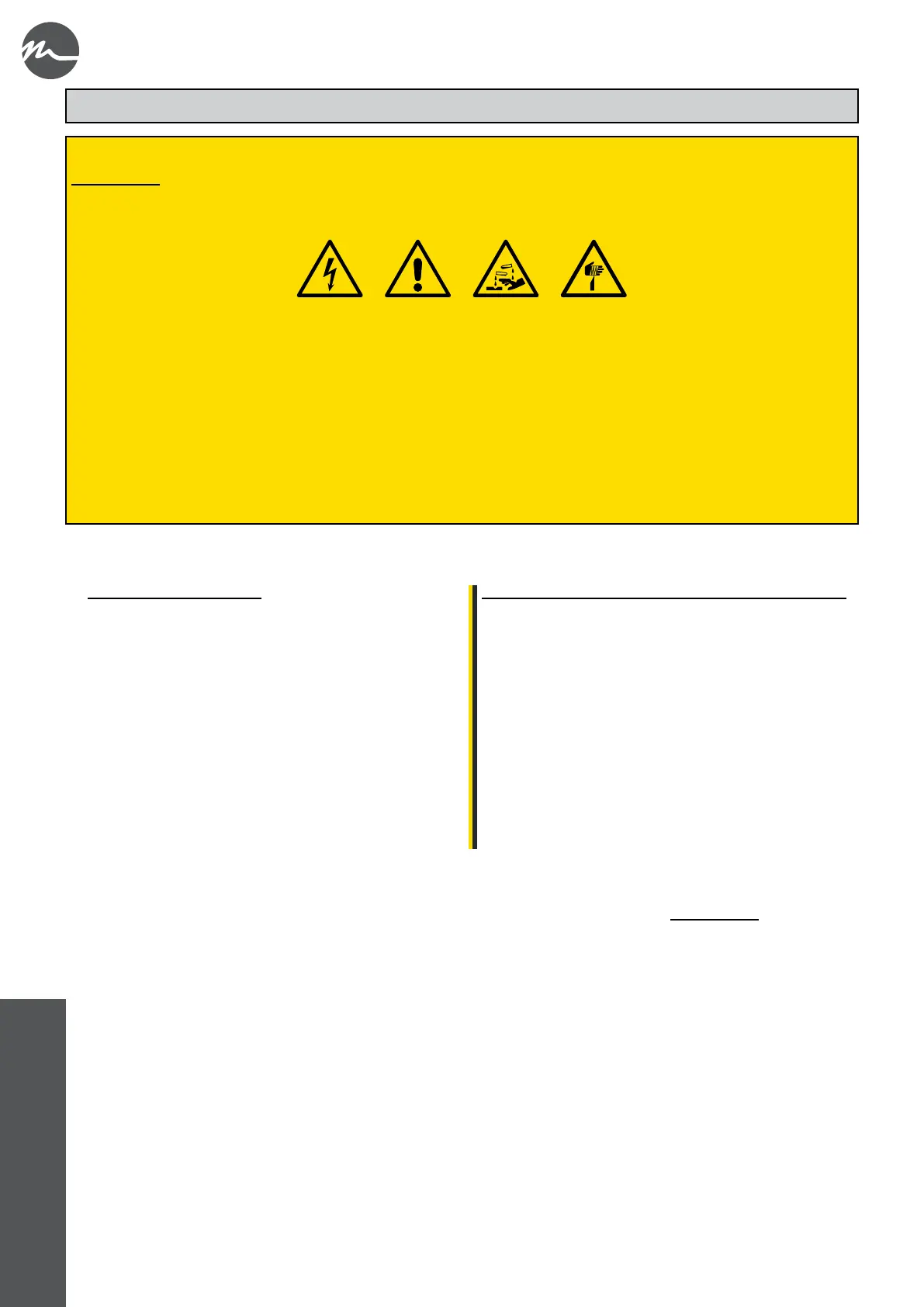 It is important to always proceed with extreme caution during maintenance operations, remembering to: