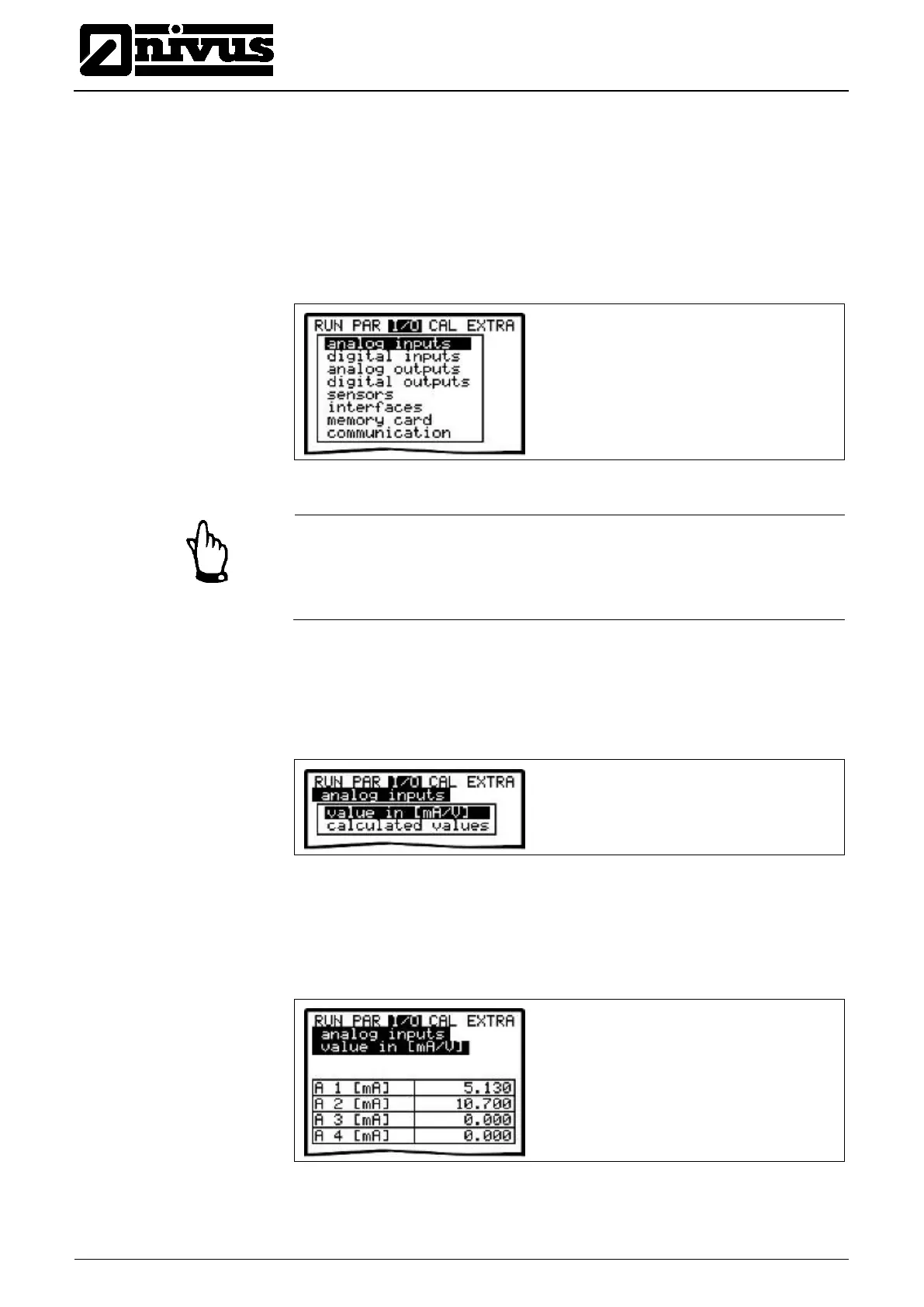9.6.1 I/O Menu „Analog inputs ”
