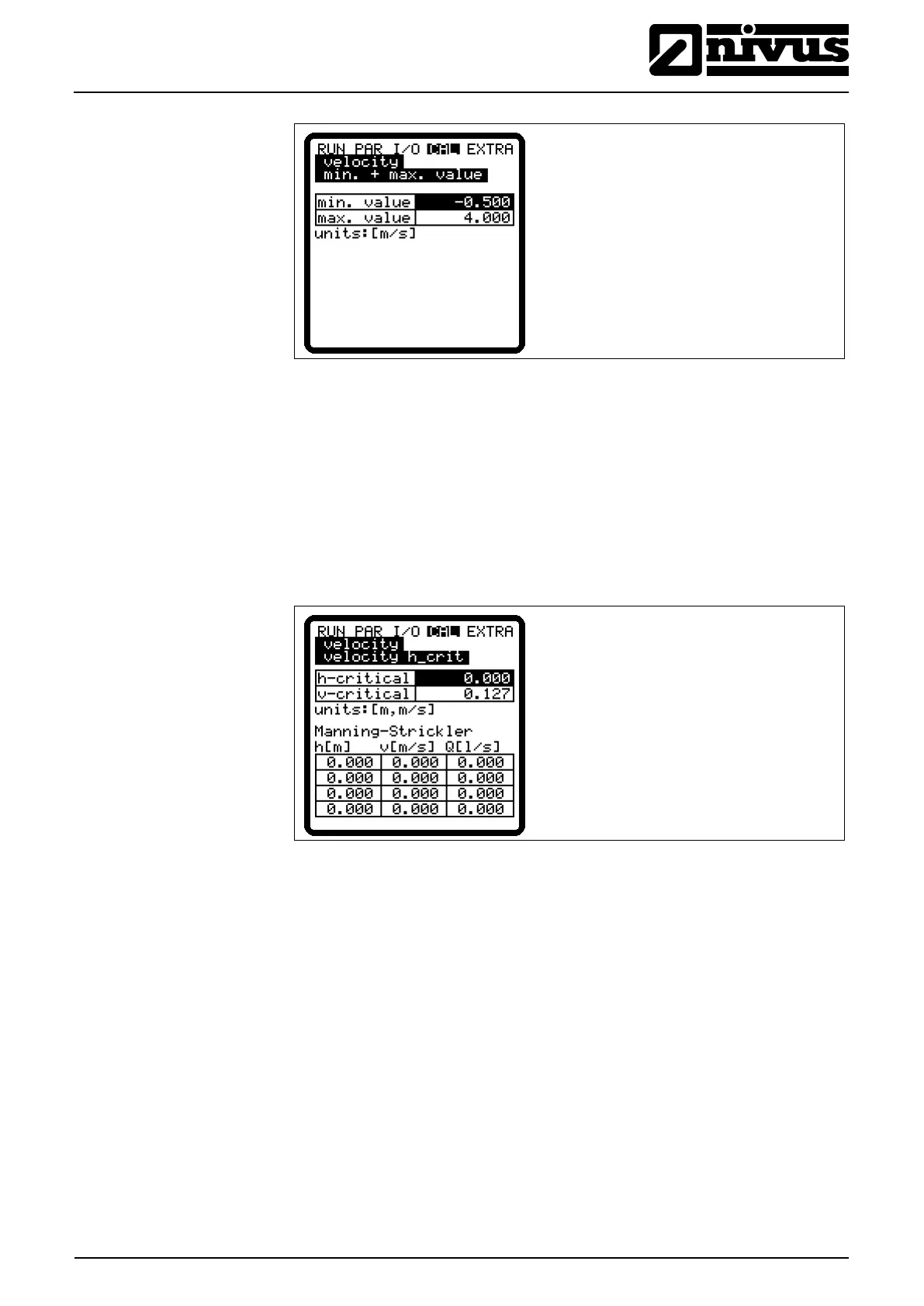 a flow velocity value prevailing at h_crit may be entered manually. If this value