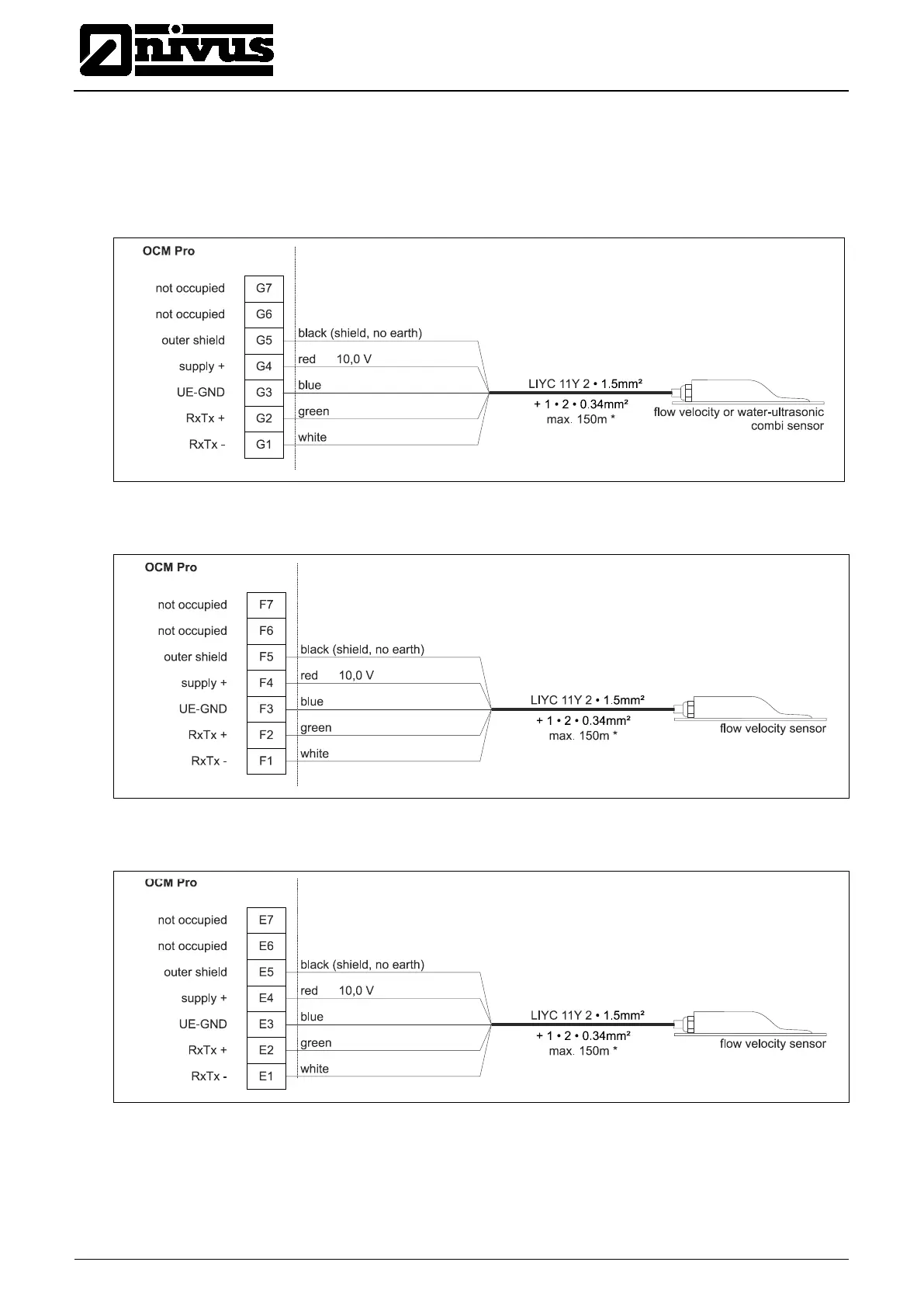 The diagram below applies in case of connecting a flow velocity or water-