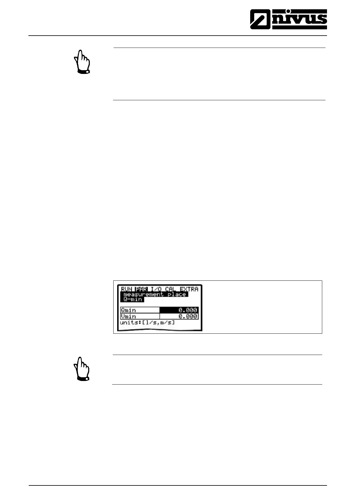 Flow velocities below this value will be set to „0“ which will set the calculated