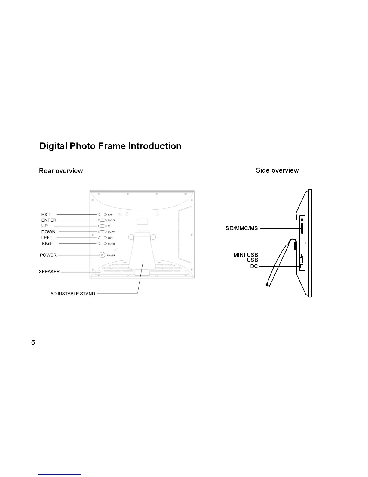 NIX X15A - Digital Photo Frame Introduction; Rear Overview; Side Overview