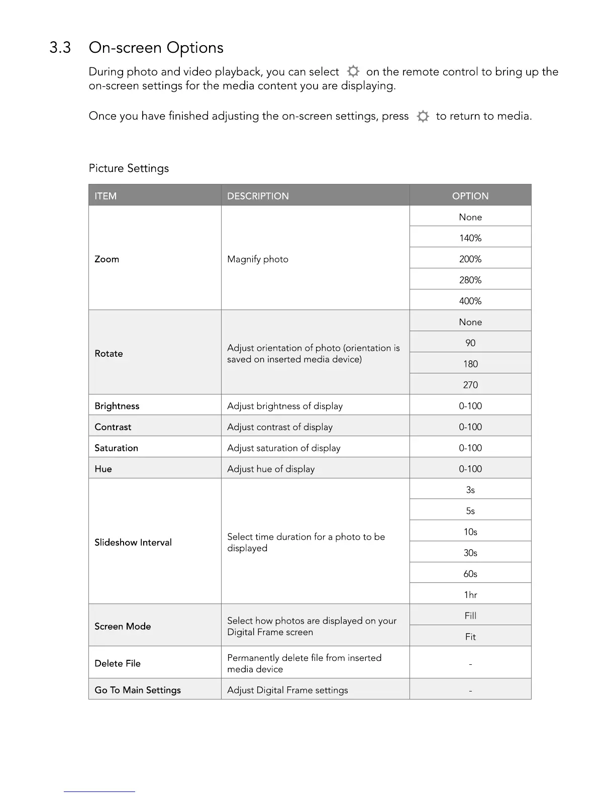 Go To Main Settings Adjust Digital Frame settings -
