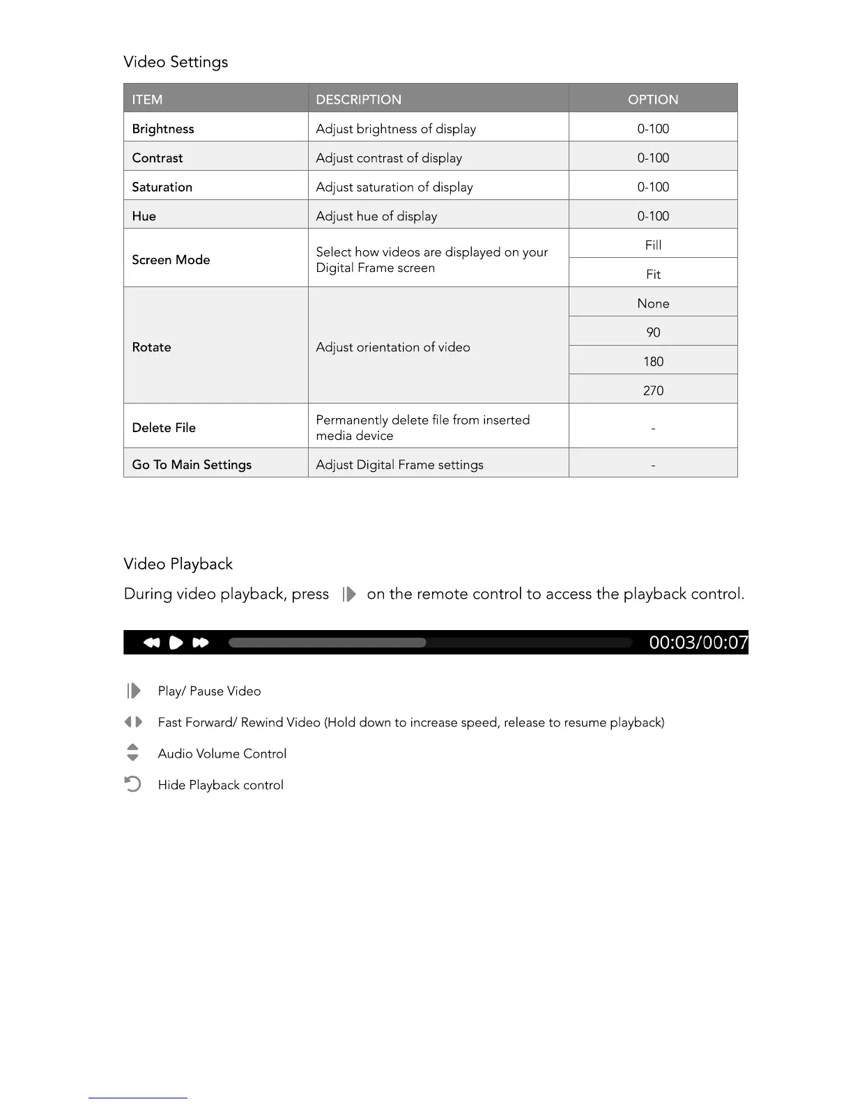 Go To Main Settings Adjust Digital Frame settings -