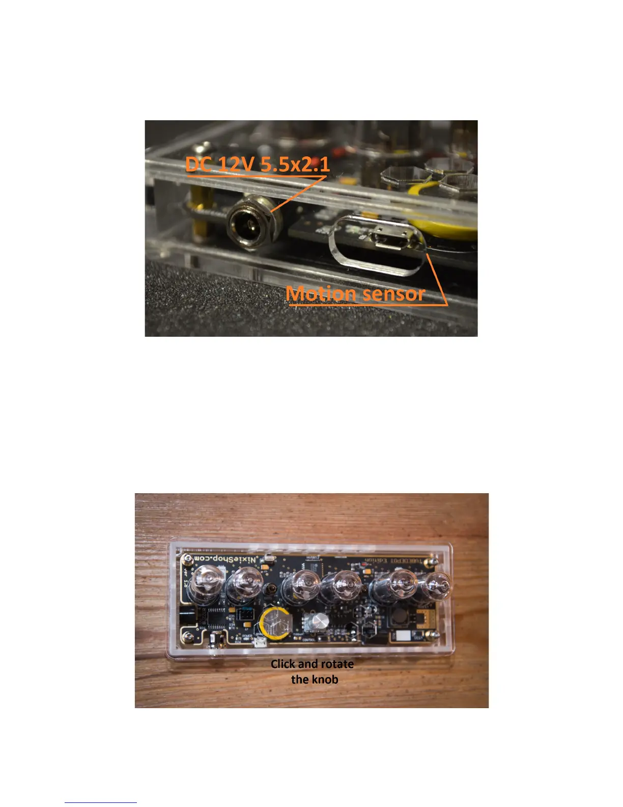 On the rear panel of the clock there are two sockets. The left pictured one is used for powering the Nixie clock.