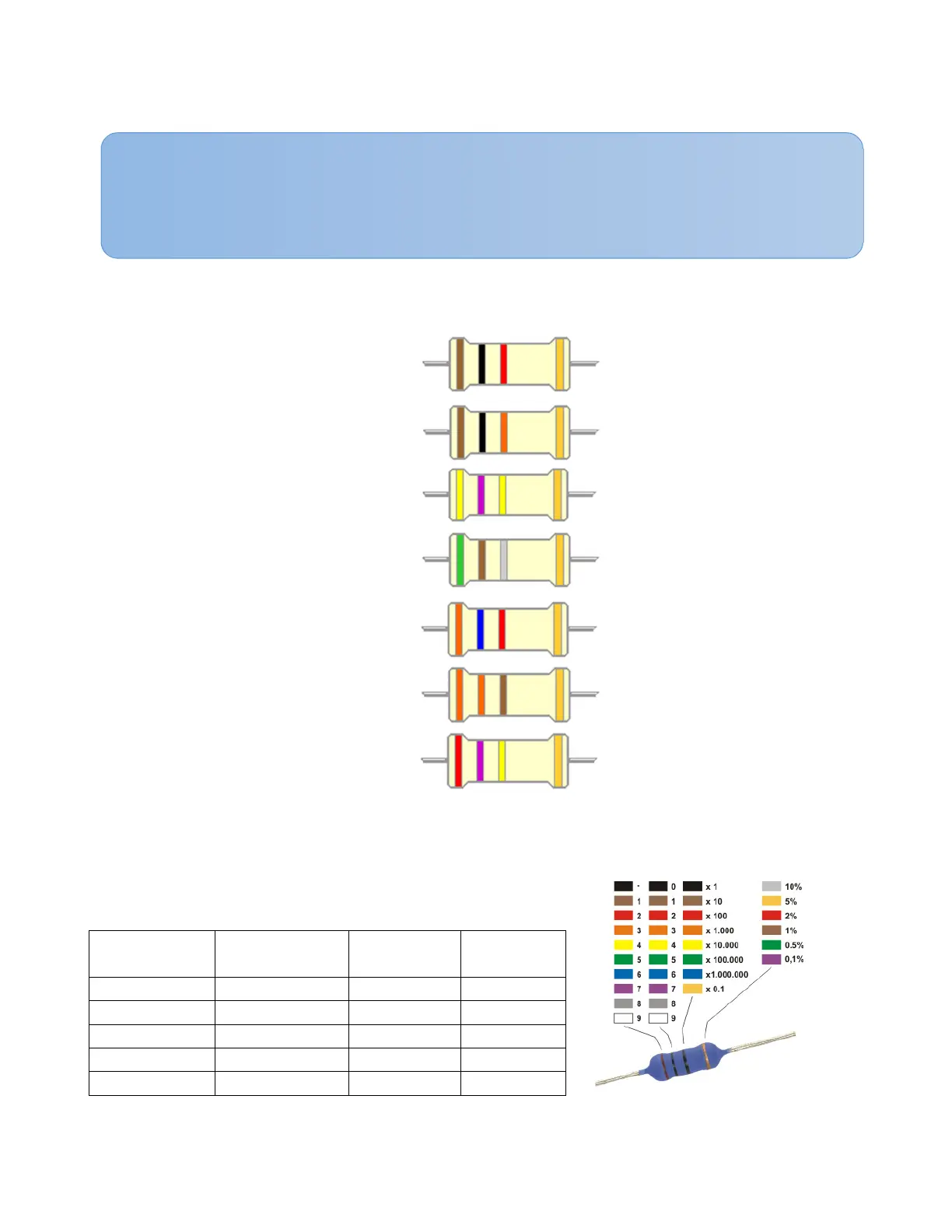 The resistors used in the kit are marked with four coloured bands to identify the value. Bands 1 and 2
