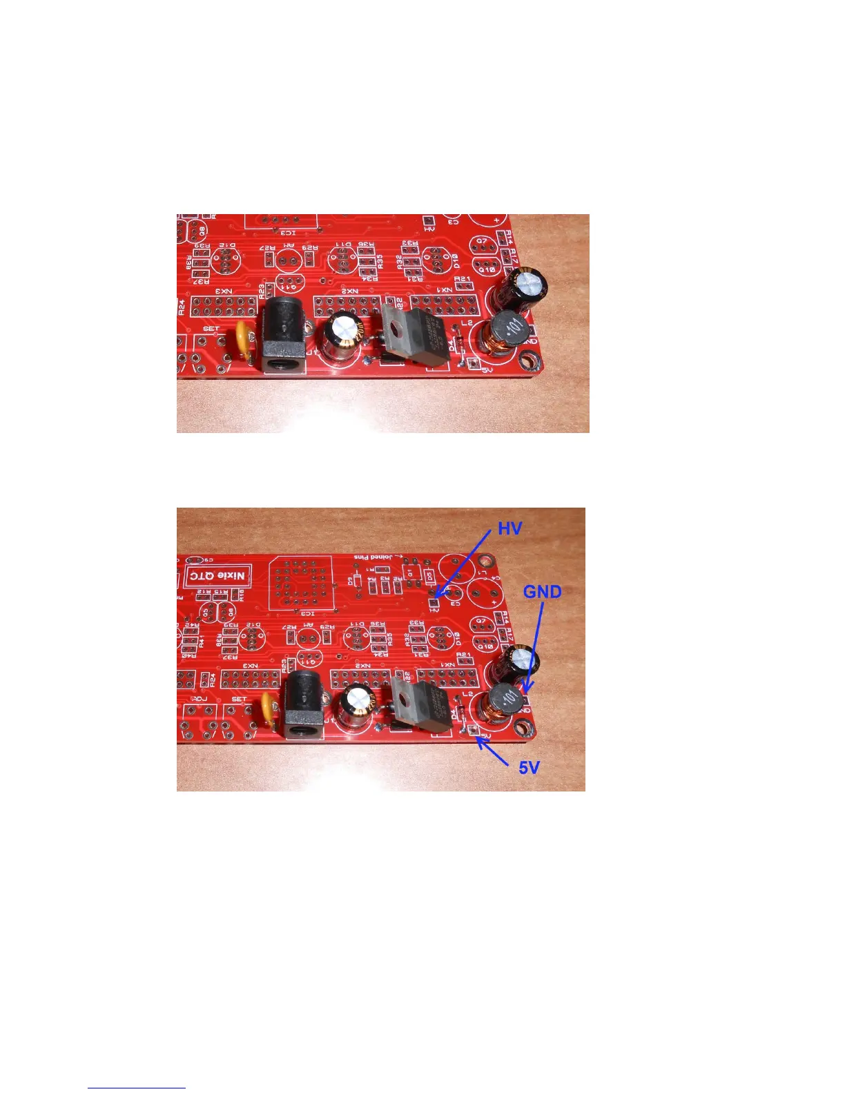 Identify the test GND, 5V and HV test points as shown below.