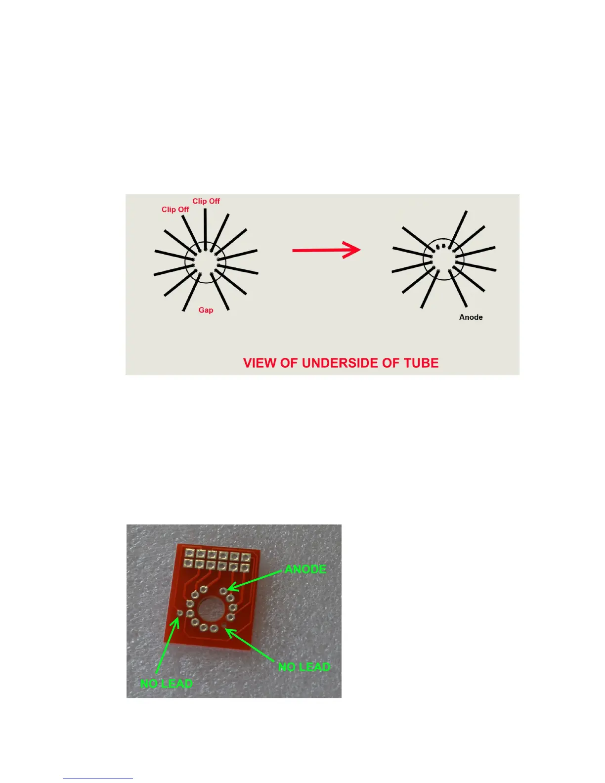 These tubes have 2 leads that need to be removed as shown