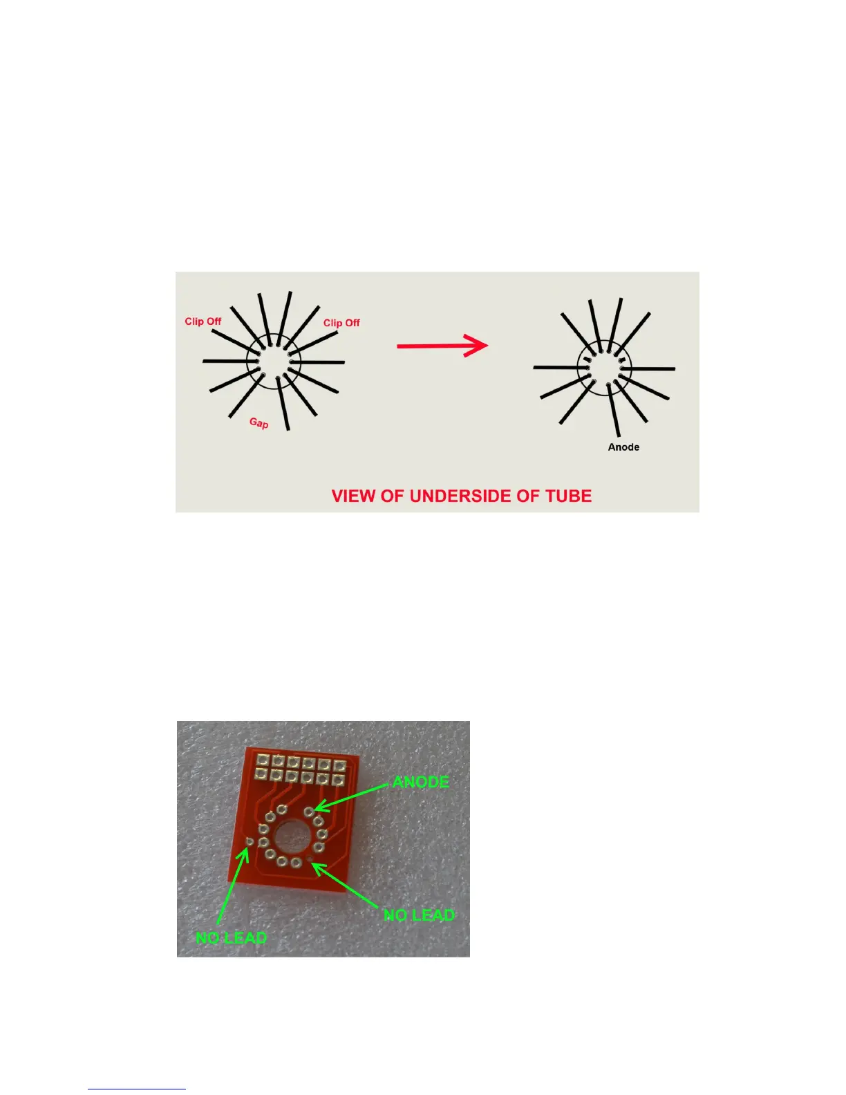 These tubes have 2 leads that need to be removed as shown