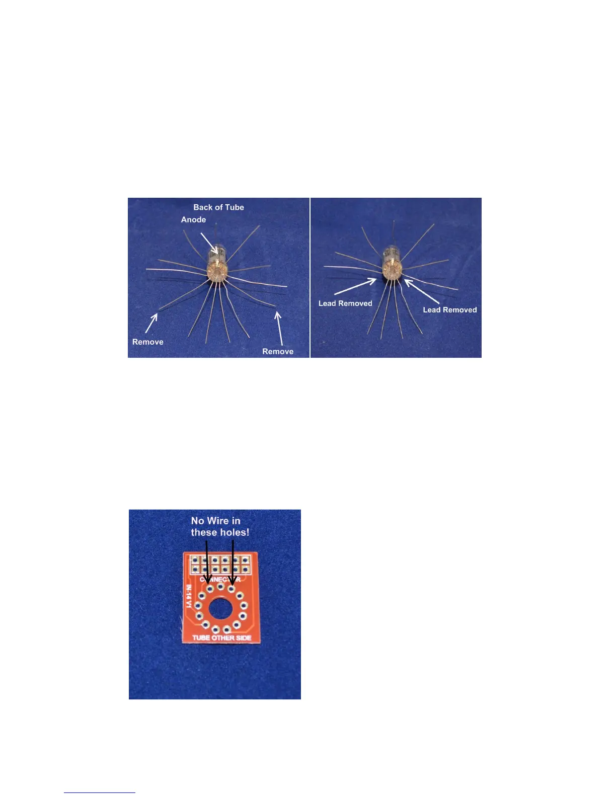 These tubes have 2 leads that need to be removed as shown