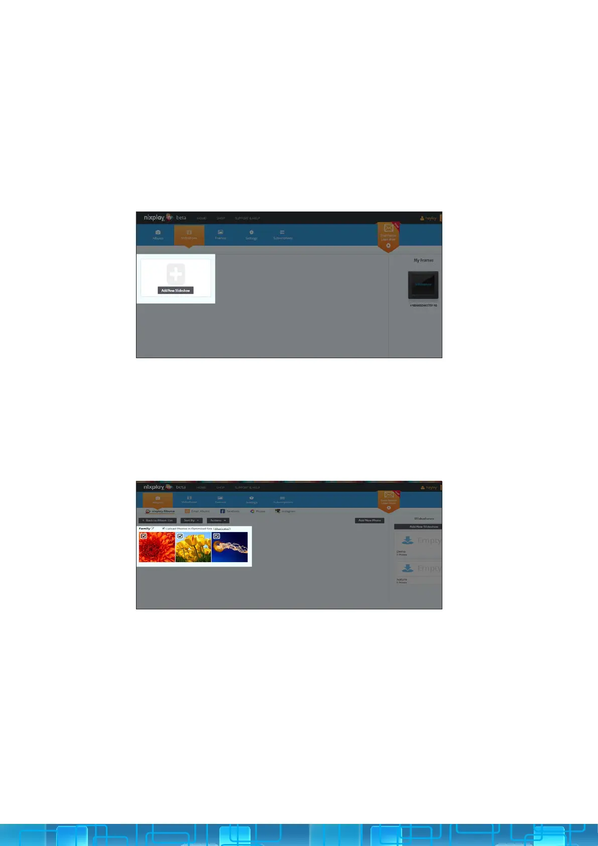 1. Select the relevant Albums tab: nixplay Albums, Email Albums,