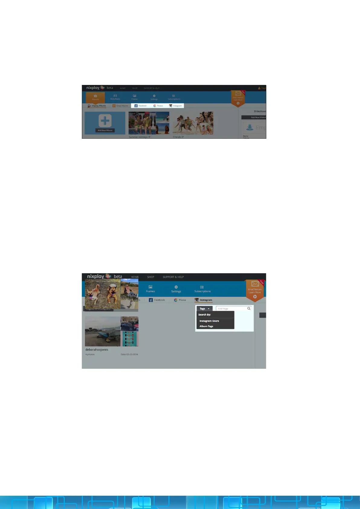 other Instagram Users or search Tags.