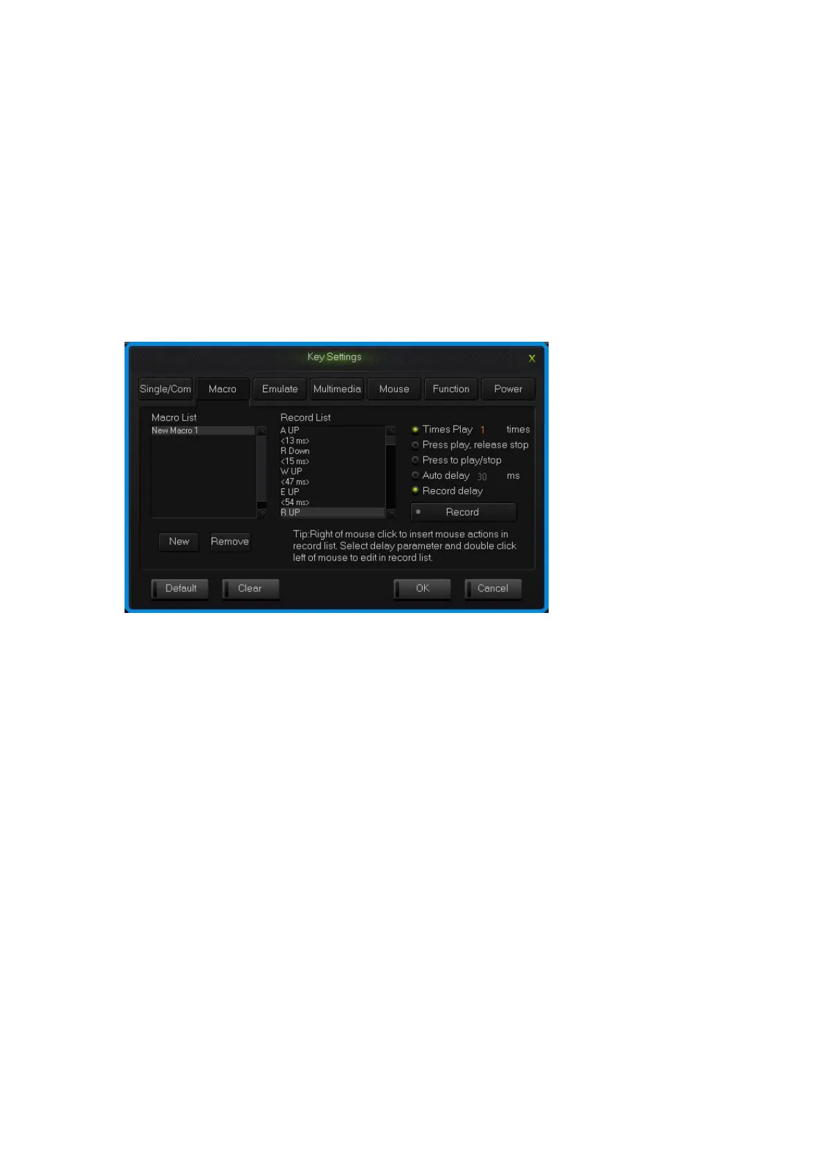 Modify delay time(50ms-60000ms, 1000ms=1s): after define a macro, single click