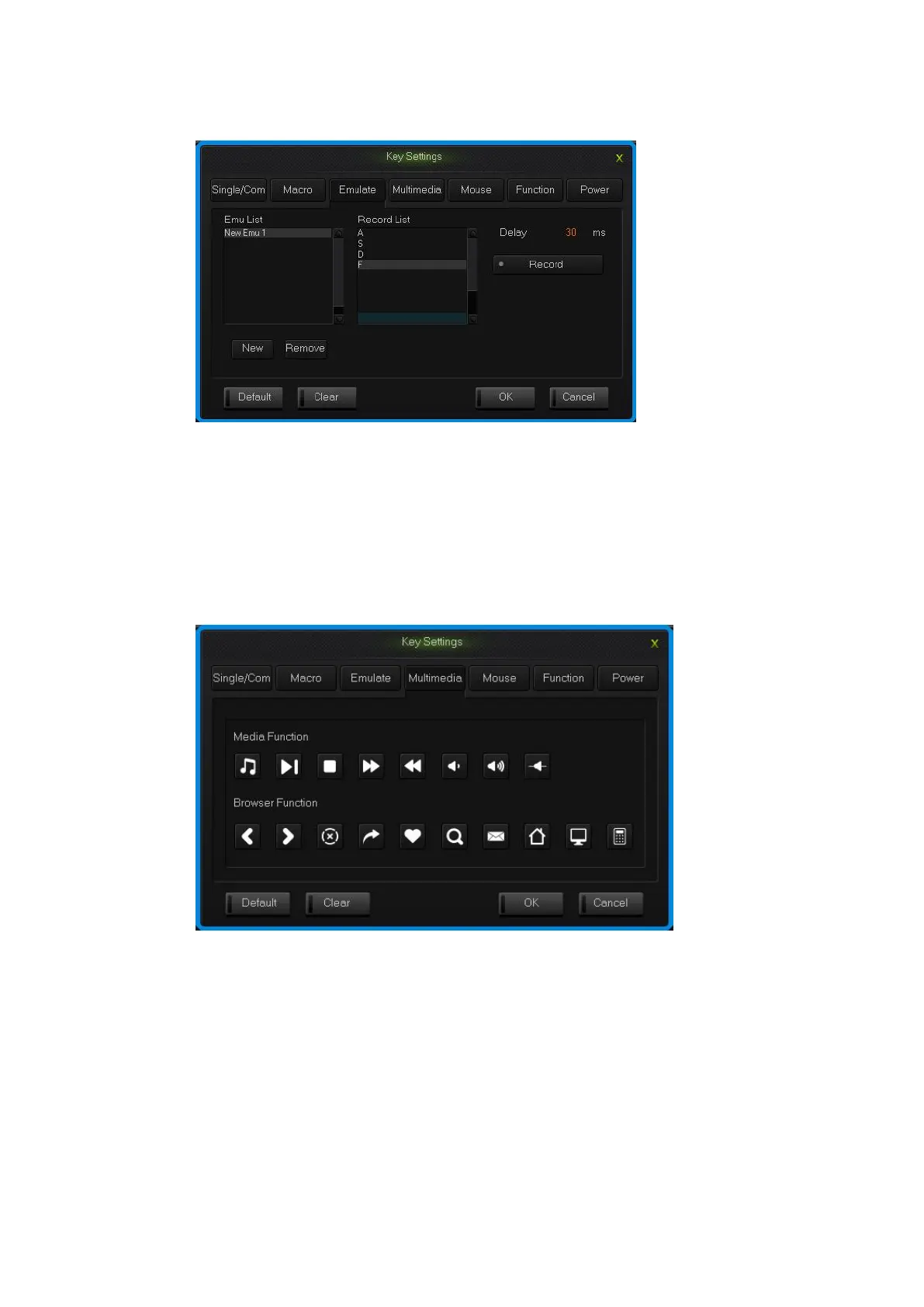1.Single click the key you need to configure, click “Mouse” in the dialog