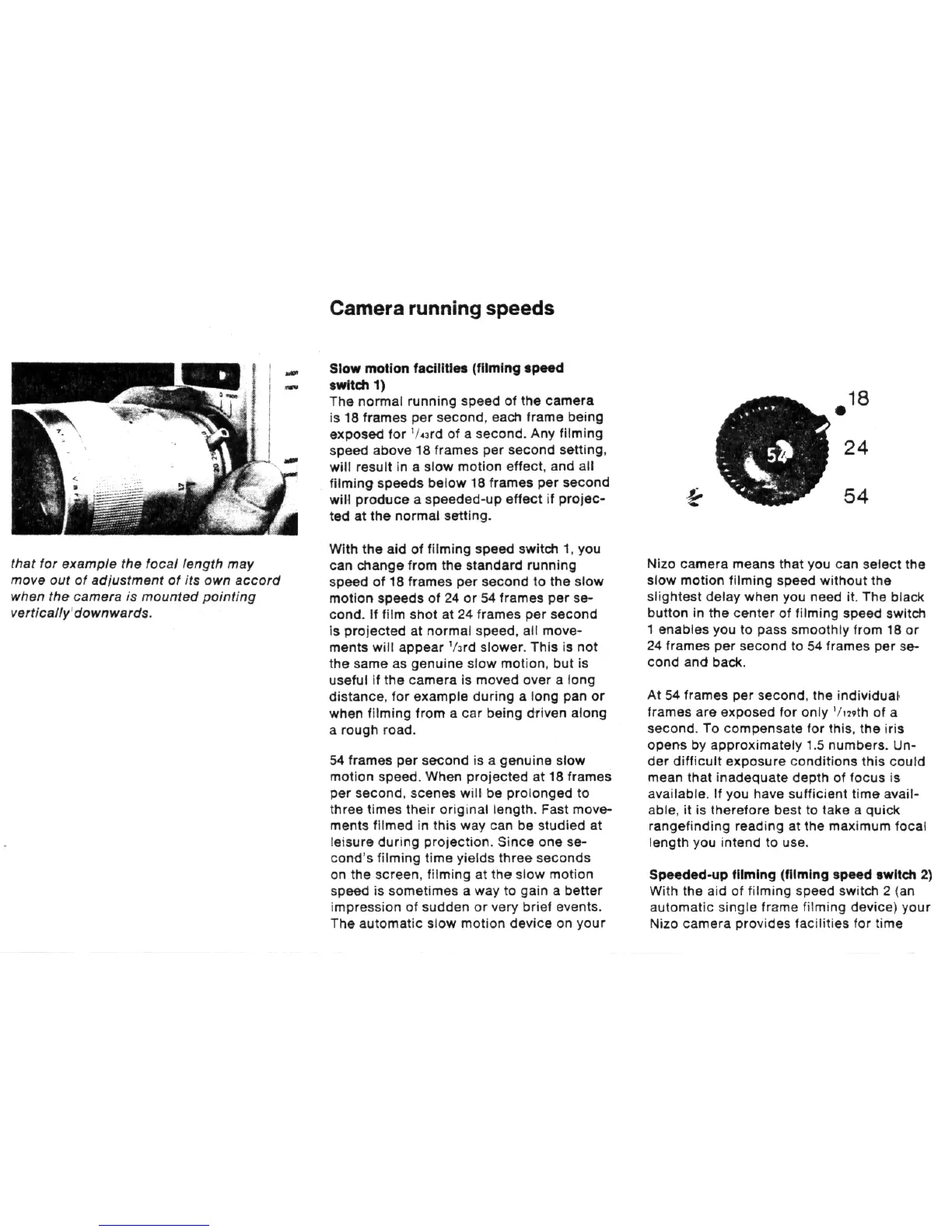Nizo 801 macro - Camera running speeds; Slow motion facilities (filming speed switch 1); Speeded-up filming (filming speed switch 2)
