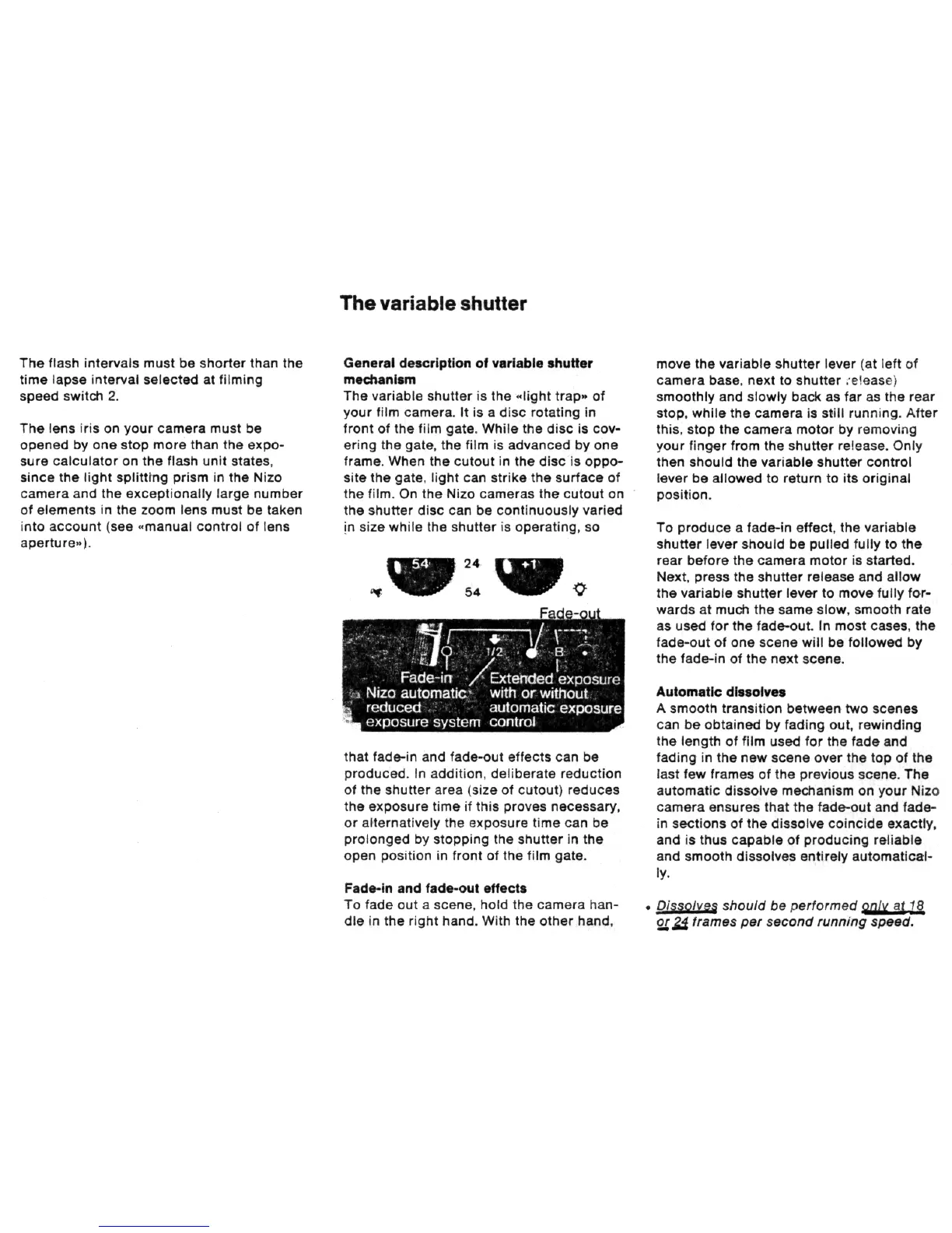 Nizo 801 macro - The variable shutter; General description of variable shutter mechanism; Fade-in and fade-out effects; Automatic dissolves