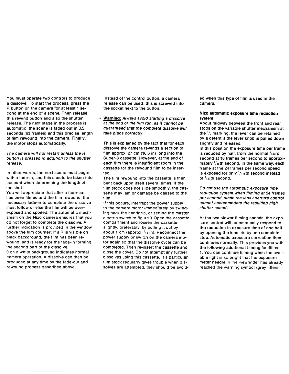 Nizo 801 macro - Nizo automatic exposure time reduction system