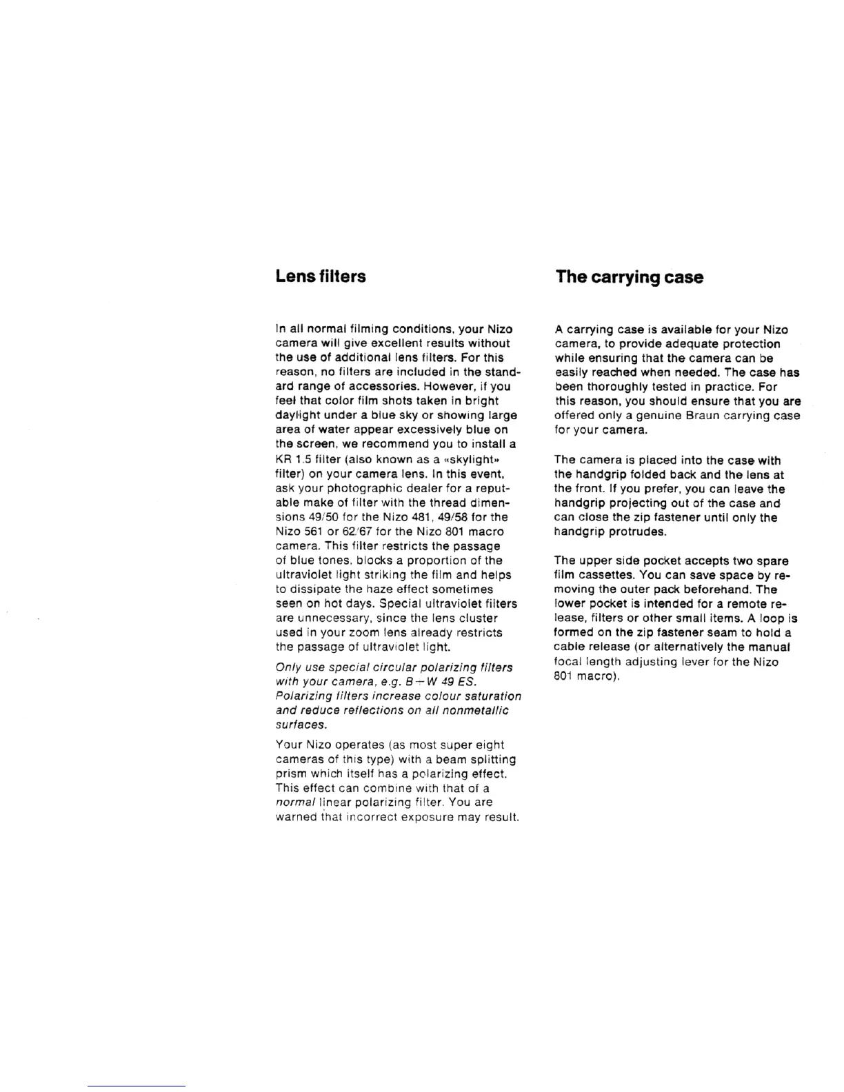 Nizo 801 macro - Lens filters; The carrying case