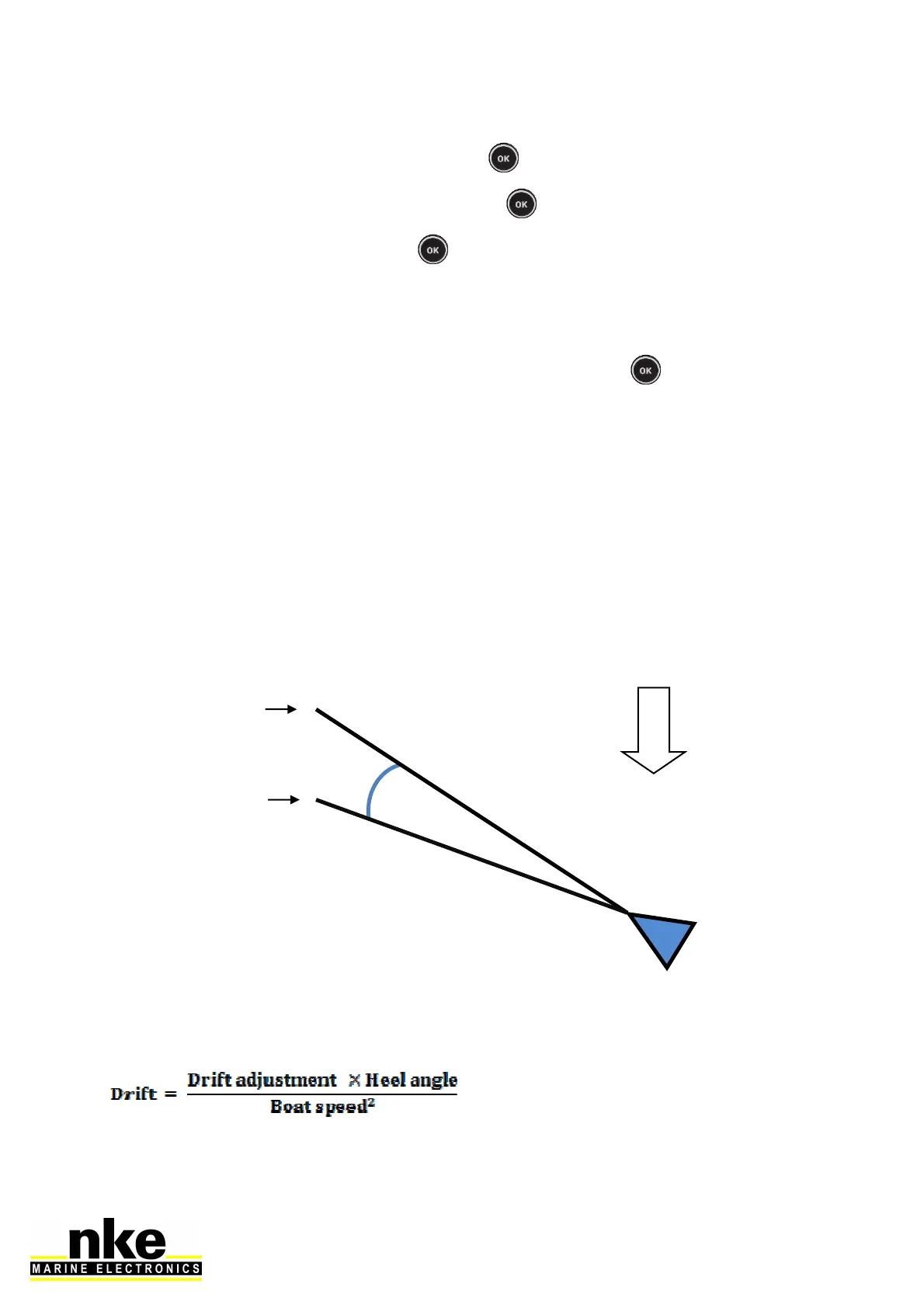 Drift angle is measured between the boat’s heading and its course.