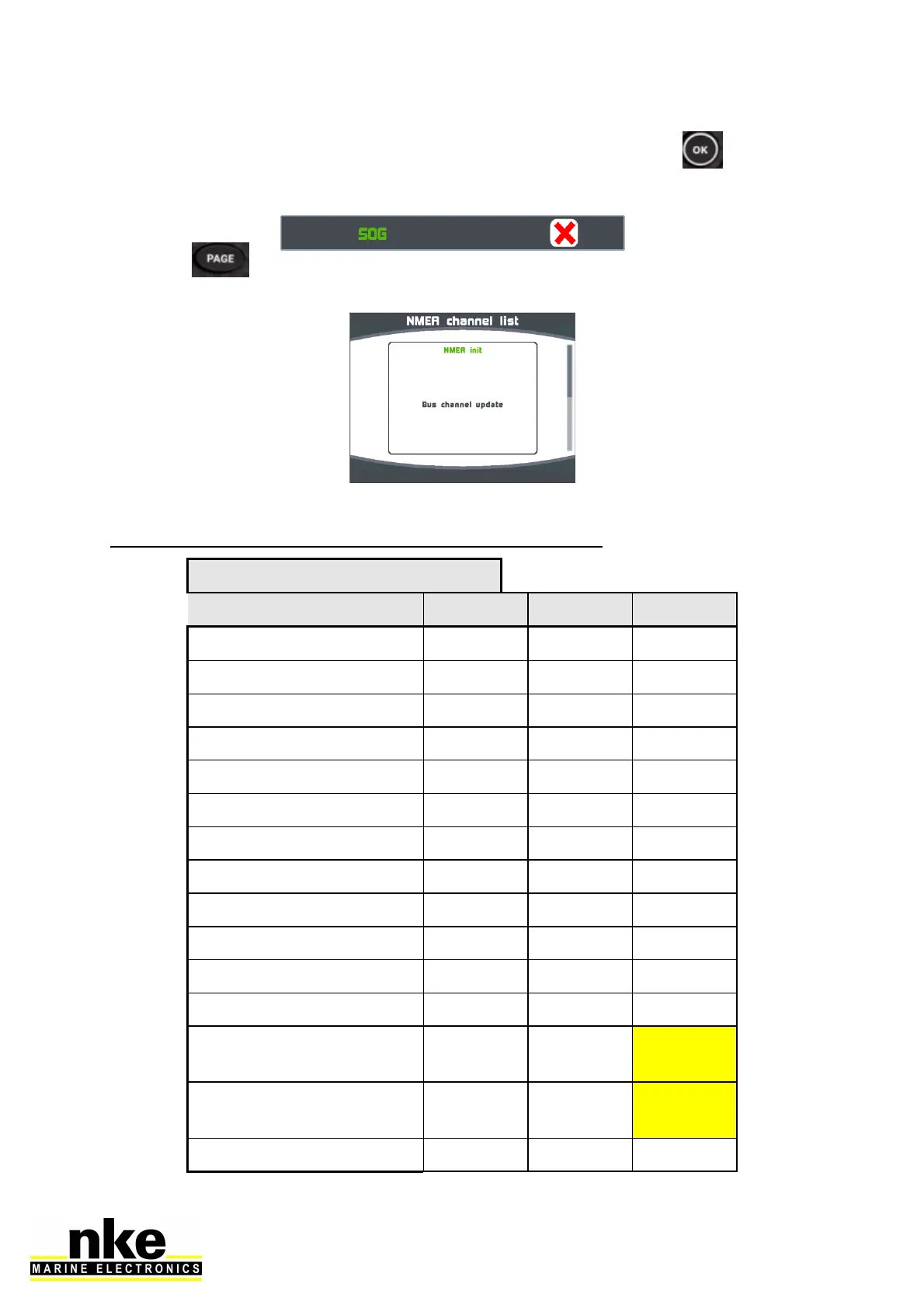 List of the channels and associated NMEA 0183 sentences.