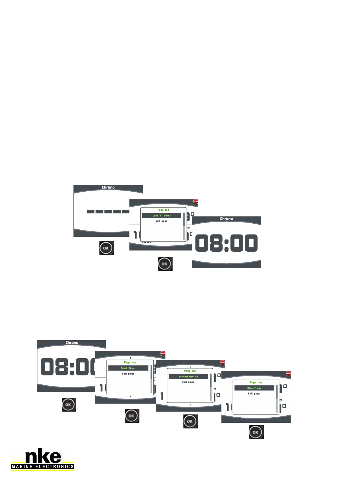 menu for synchronize race timer at « T2 » press « OK » for synchronize . After