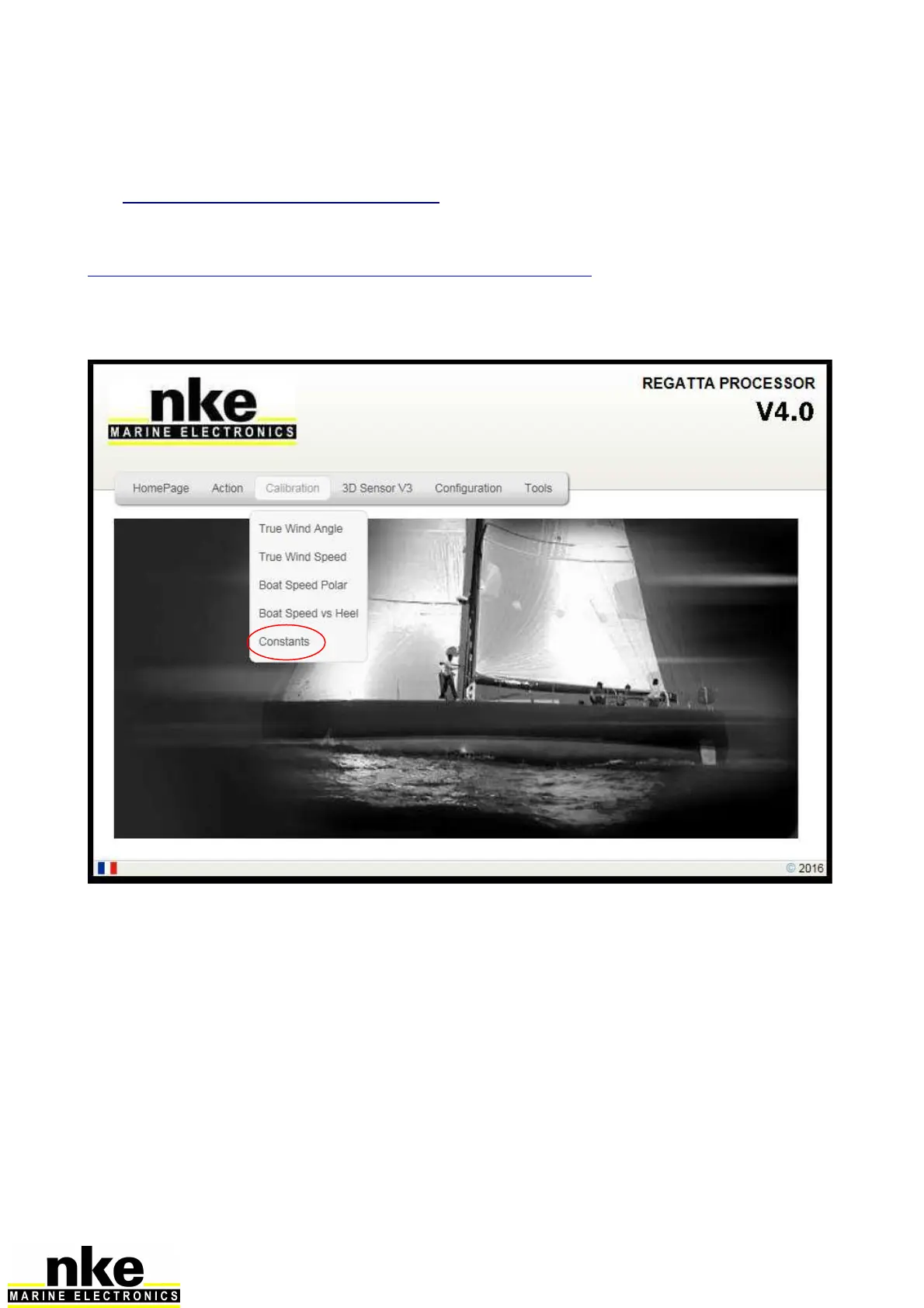 Press « Calibration » on the Processor Regatta home page, and then on « Constants ».