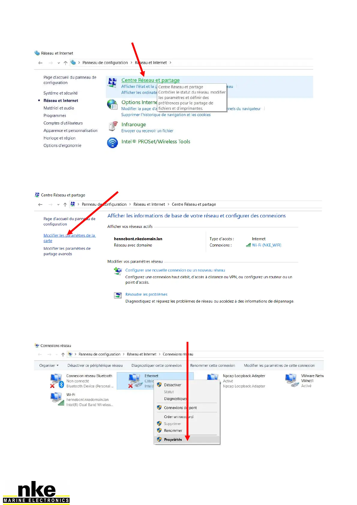On Ethernet card, right click and "Properties"