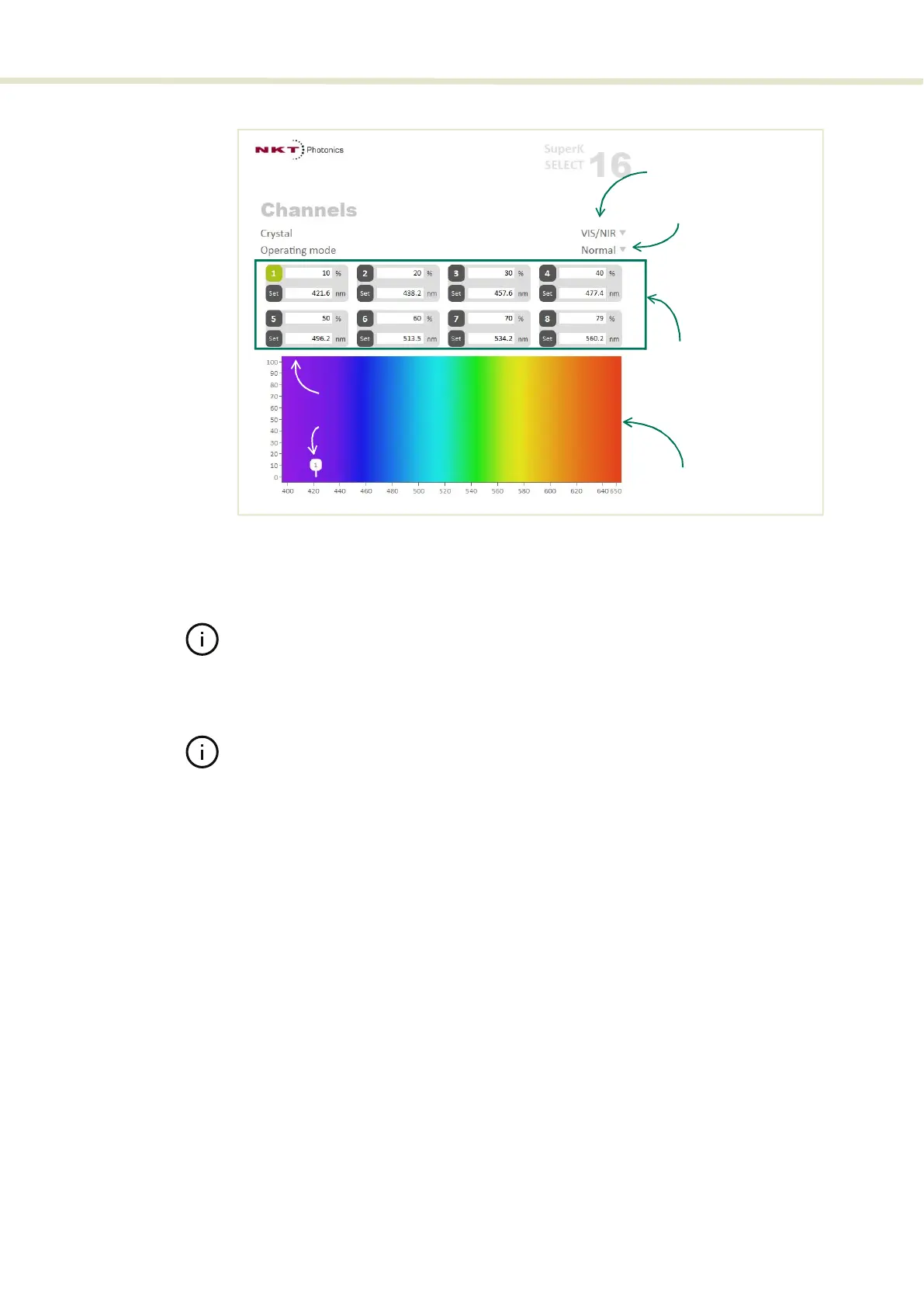 sliders with your mouse to set the power and center wavelength of the channel.