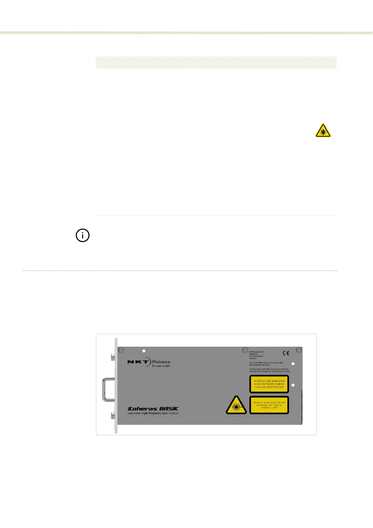 The Koheras BASIK modules include multiple labels that indicate hazards,