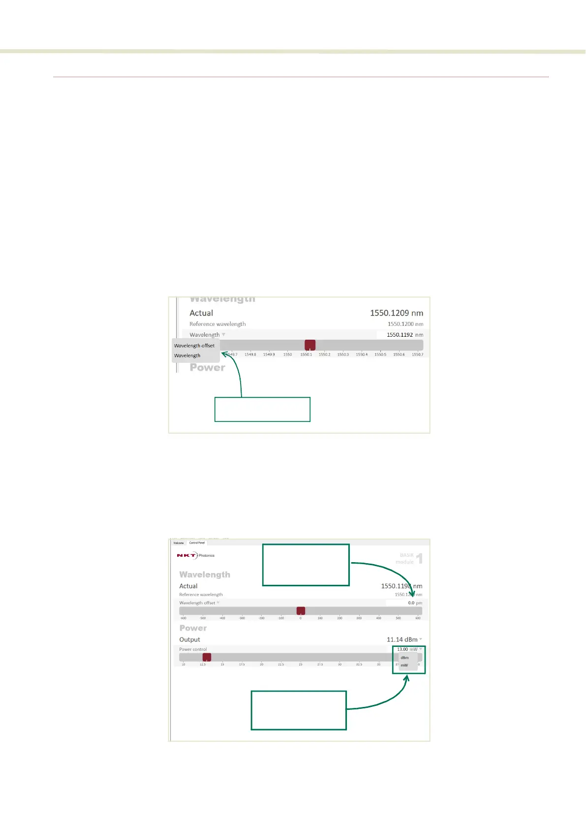 laser’s output. The panel provides both a wavelength offset (or wavelength)