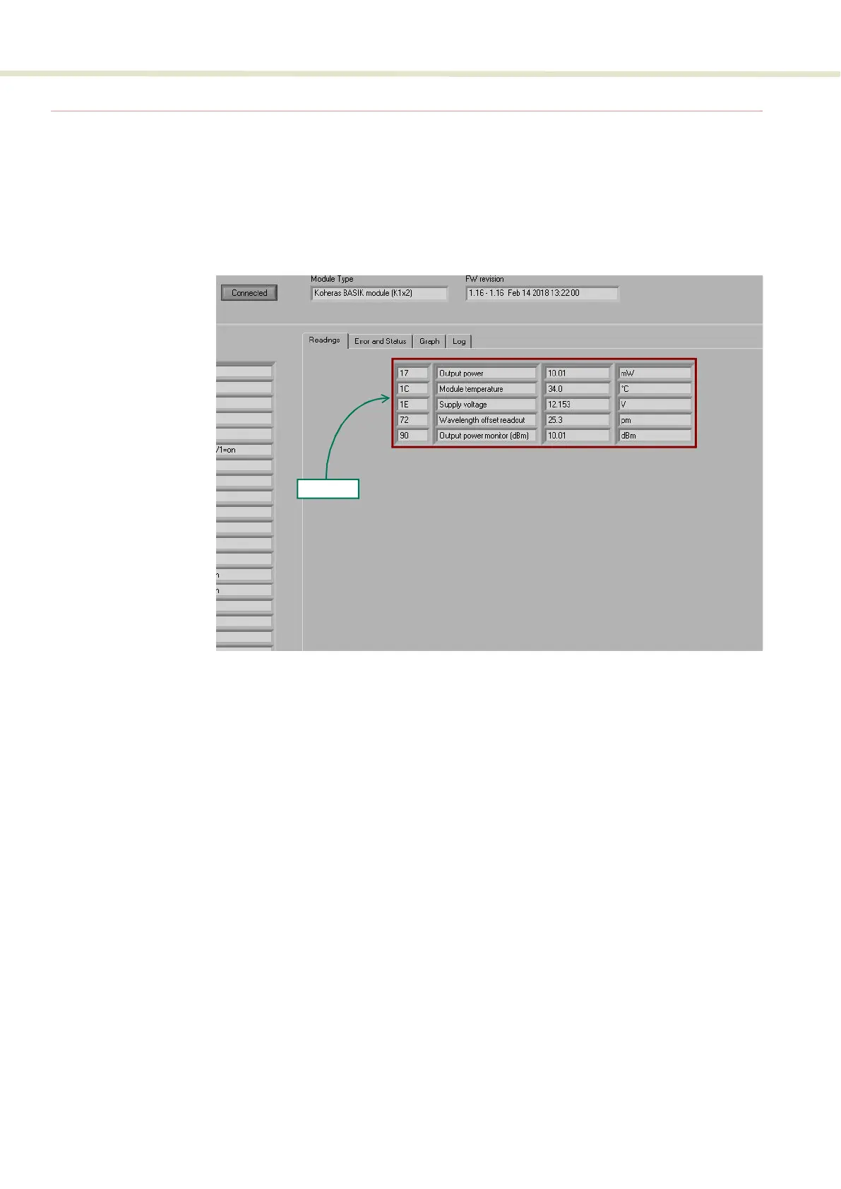 NKT Koheras BASIK - Readings; Figure 57 Read-Only Registers under the Readings Tab