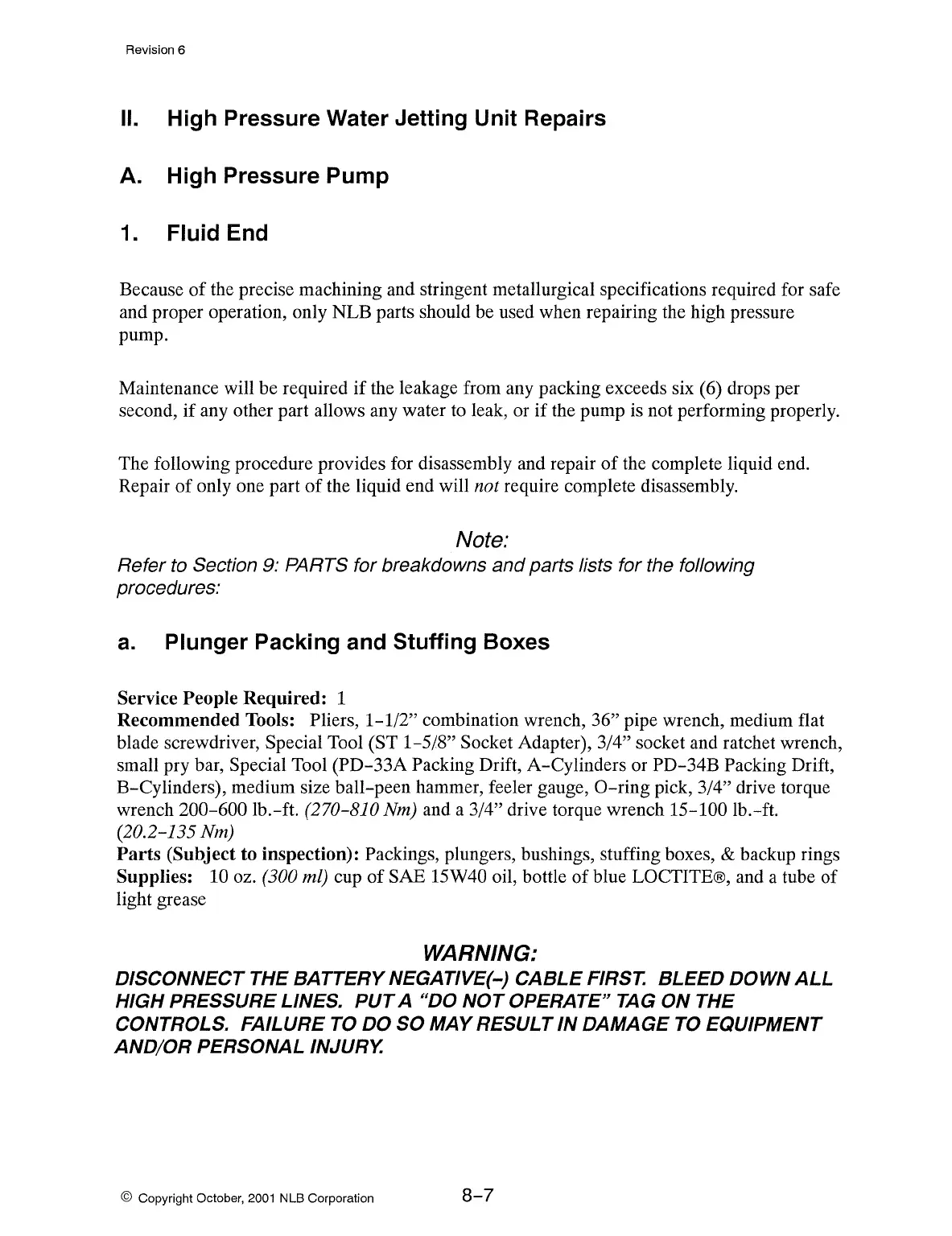 and proper operation, only NLB parts should be used when repairing the high pressure
