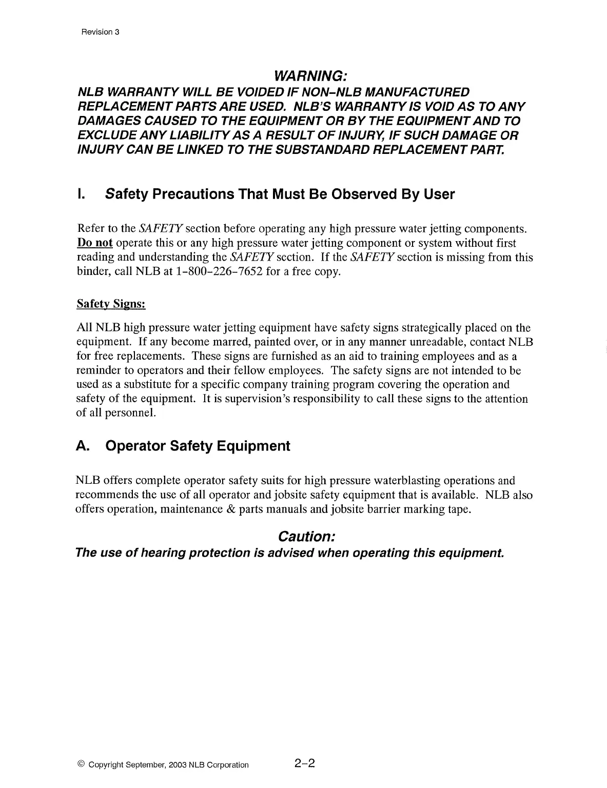 NLB offers complete operator safety suits for high pressure waterblasting operations and