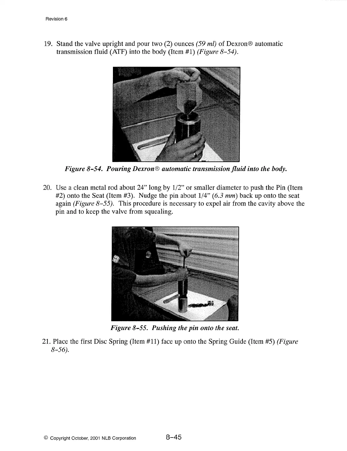 19. Stand the valve upright and pour two (2) ounces (59 ml)