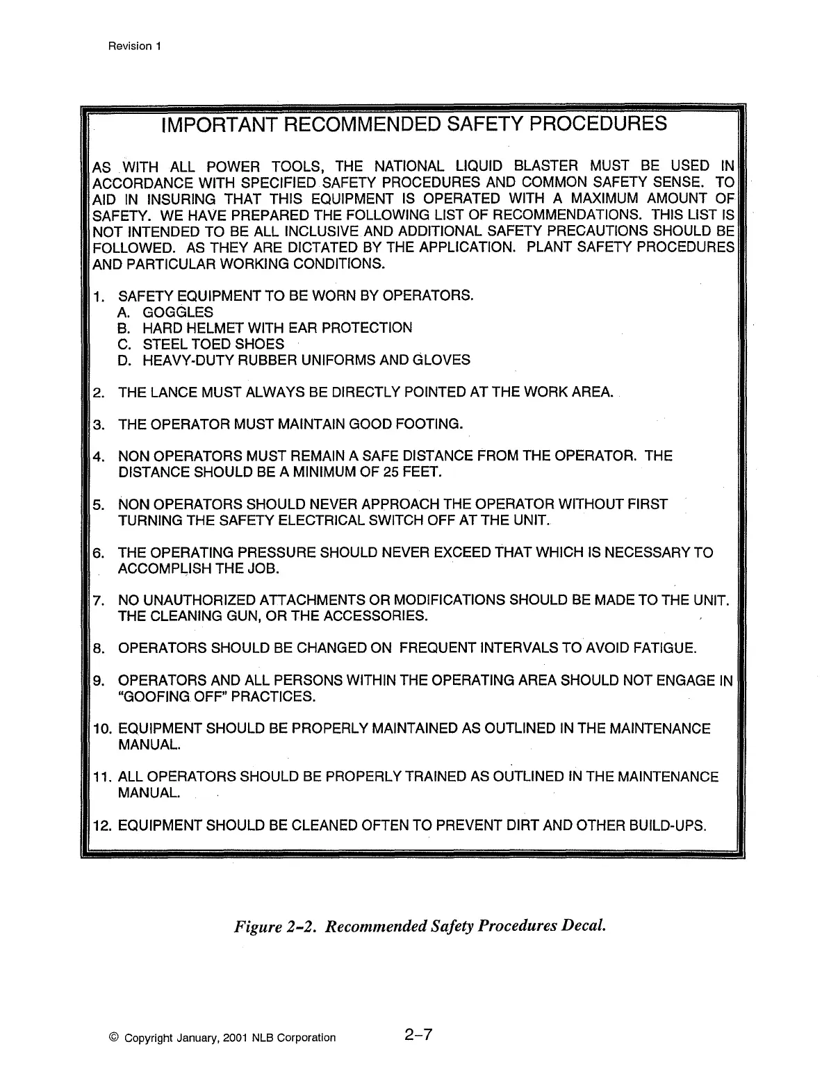 IMPORTANT RECOMMENDED SAFETY PROCEDURES