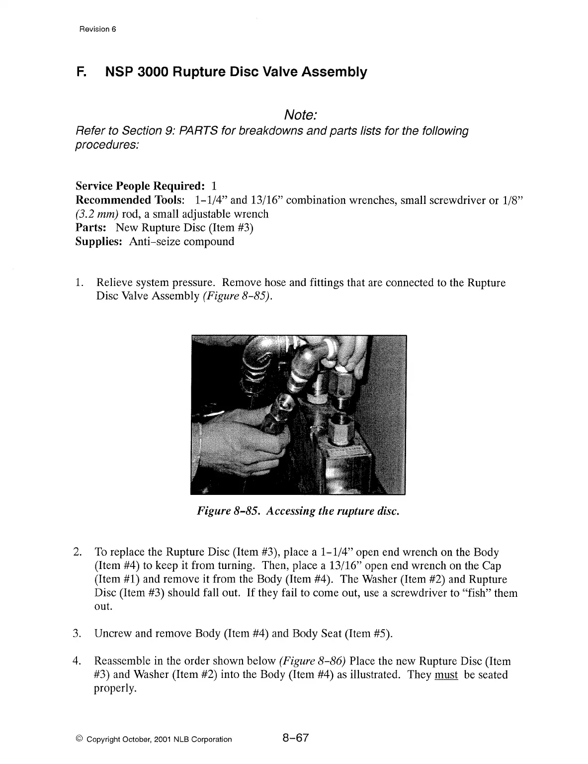 replace the Rupture Disc (Item #3), place a 1-1/4" open end wrench on the Body