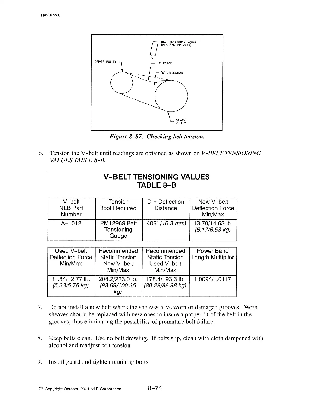 not install a new belt where the sheaves have worn or damaged grooves. Worn