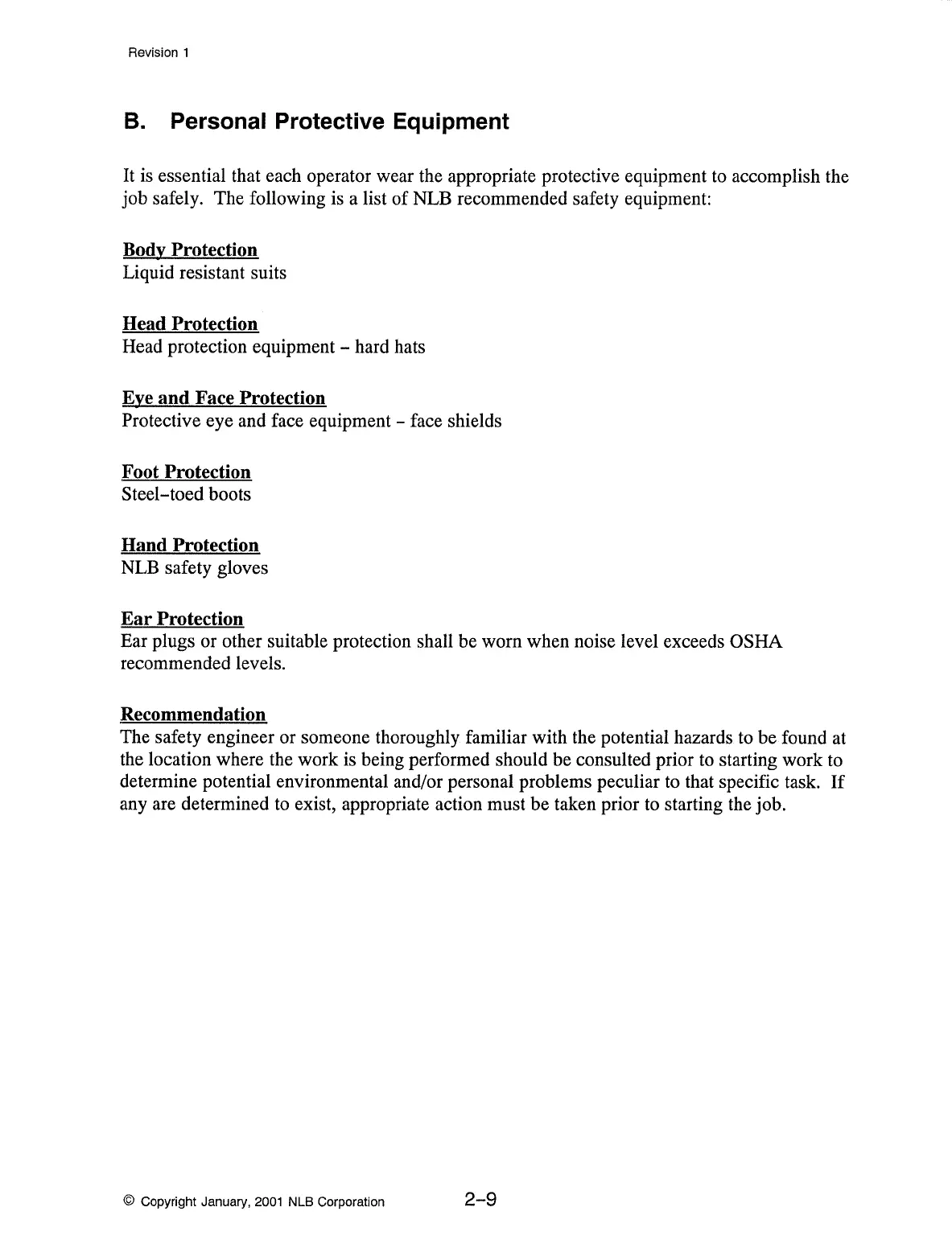 job safely. The following is a list of NLB recommended safety equipment: