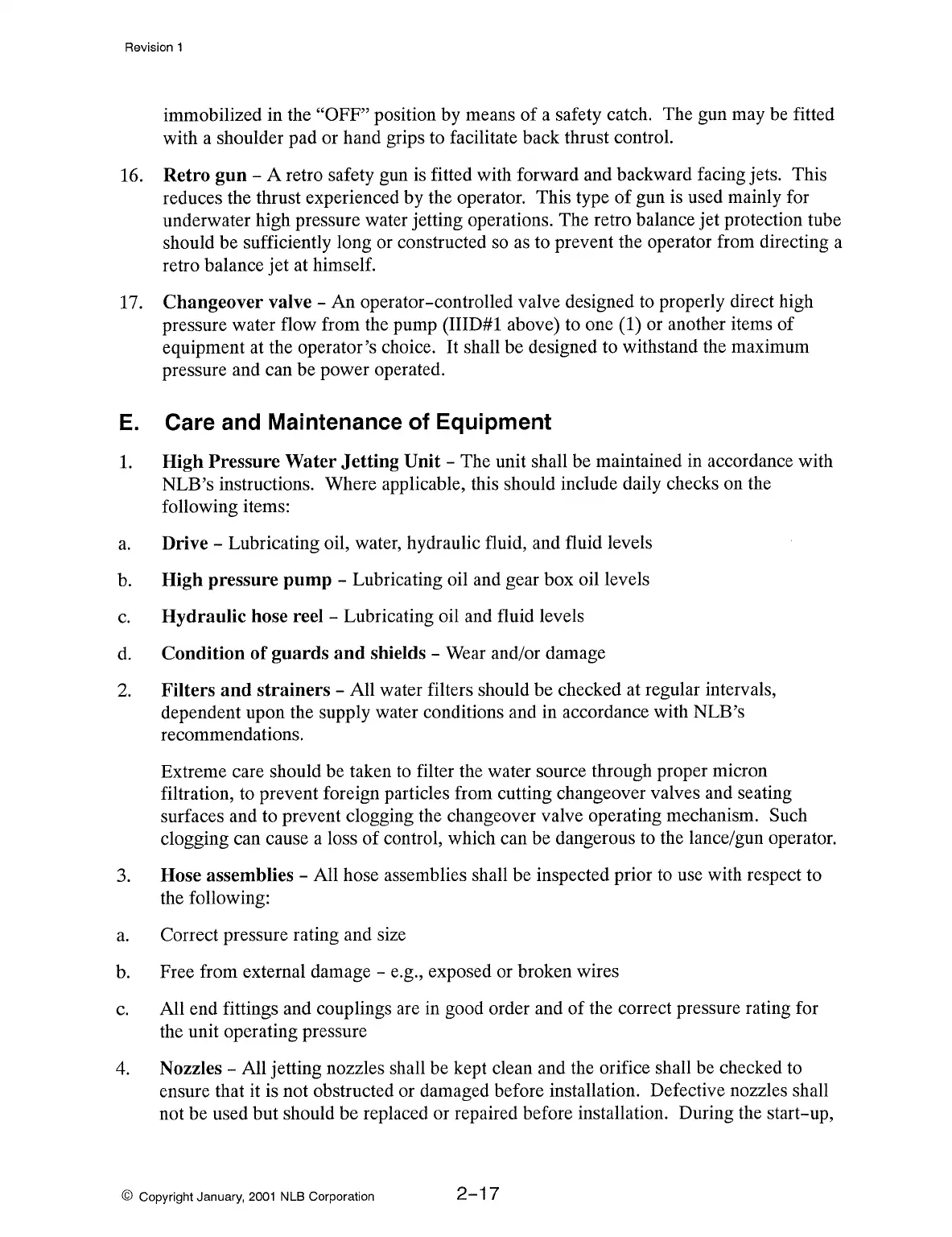 Nozzles - All jetting nozzles shall be kept clean and the orifice shall be checked