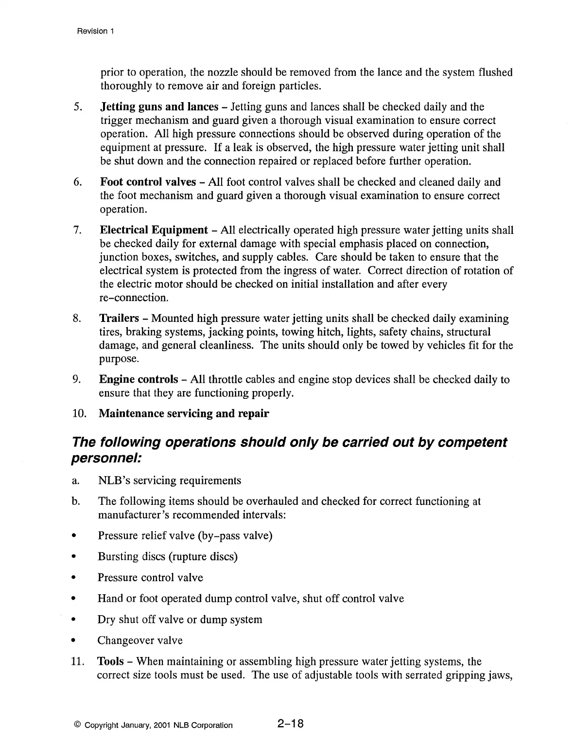 Trailers - Mounted high pressure water jetting units shall be checked daily examining
