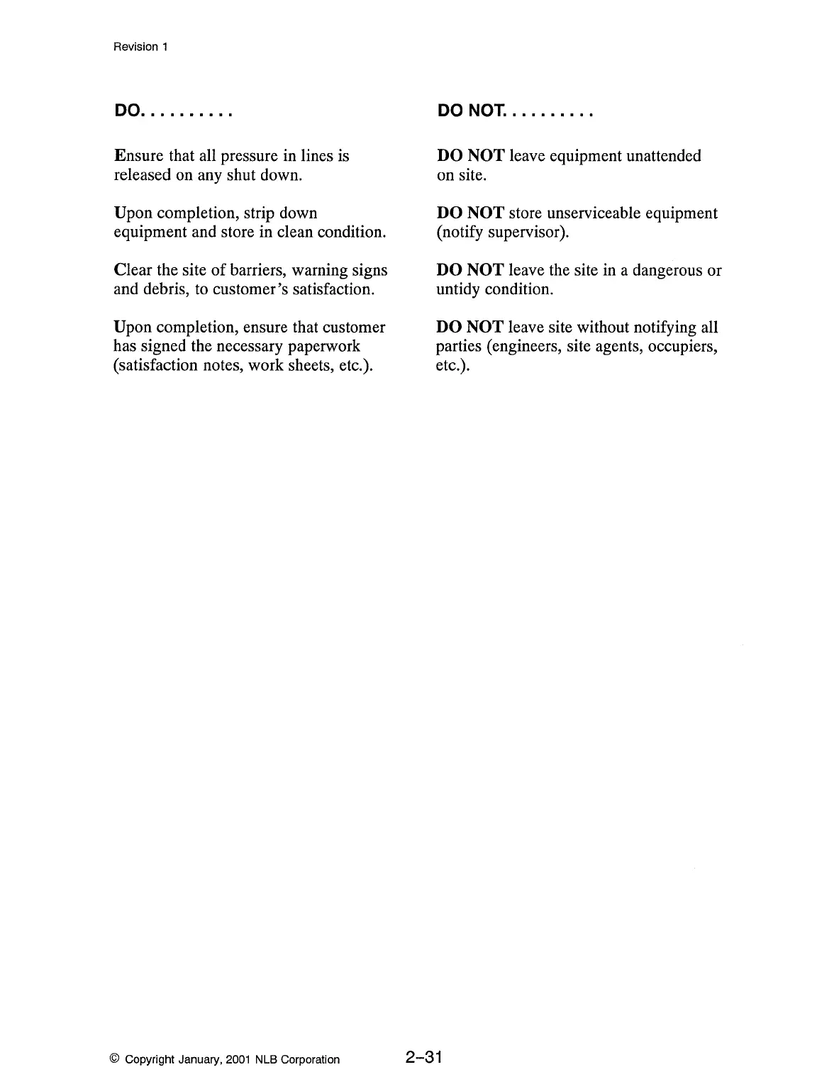 DO NOT leave the site in a dangerous or