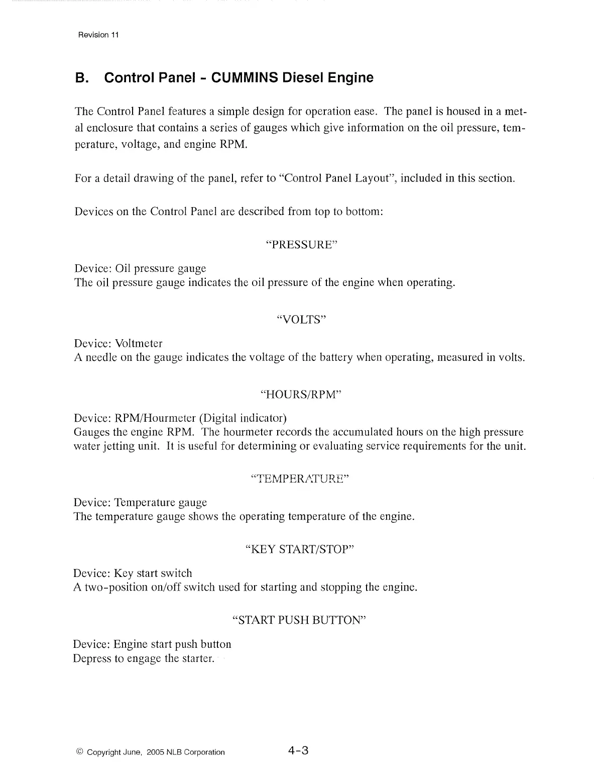 For a detail drawing of the panel, refer to "Control Panel Layout", included in this section.