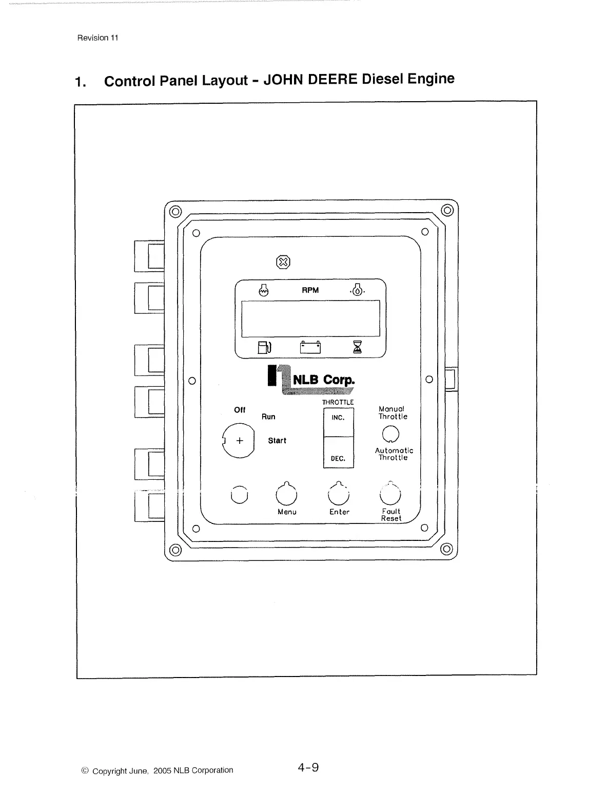 NLB 1012D - Control Panel Layout - JOHN DEERE Diesel Engine