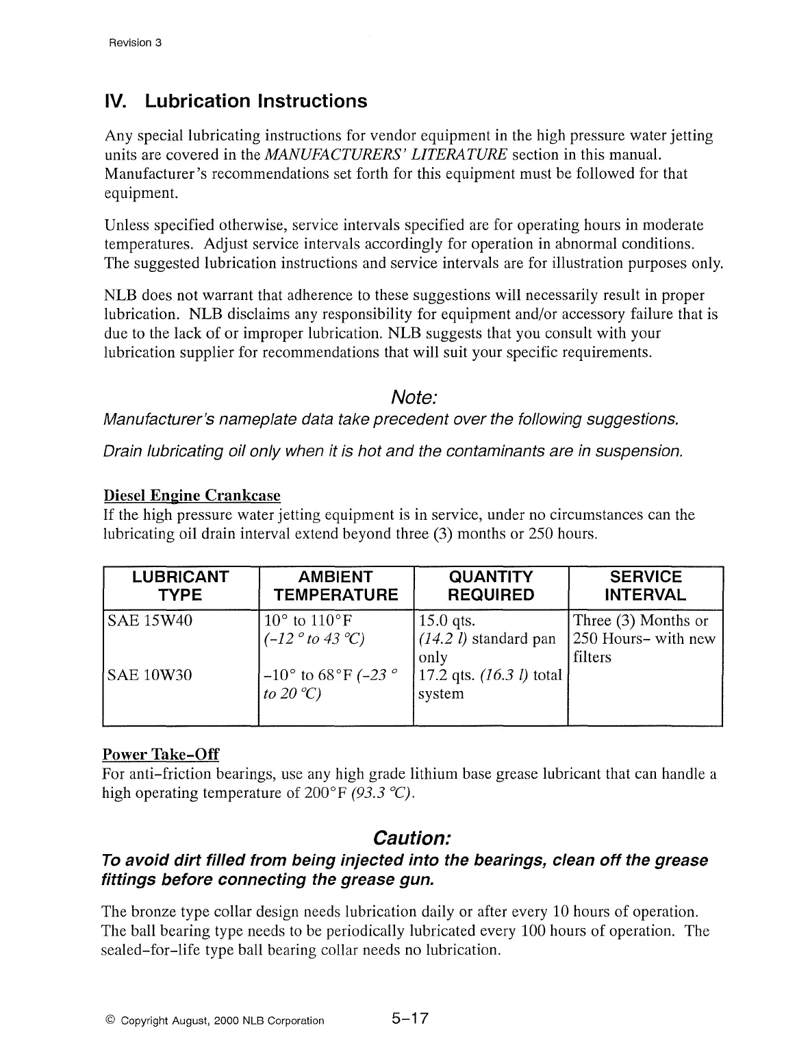 lubrication. NLB disclaims any responsibility for equipment and/or accessory failure that is