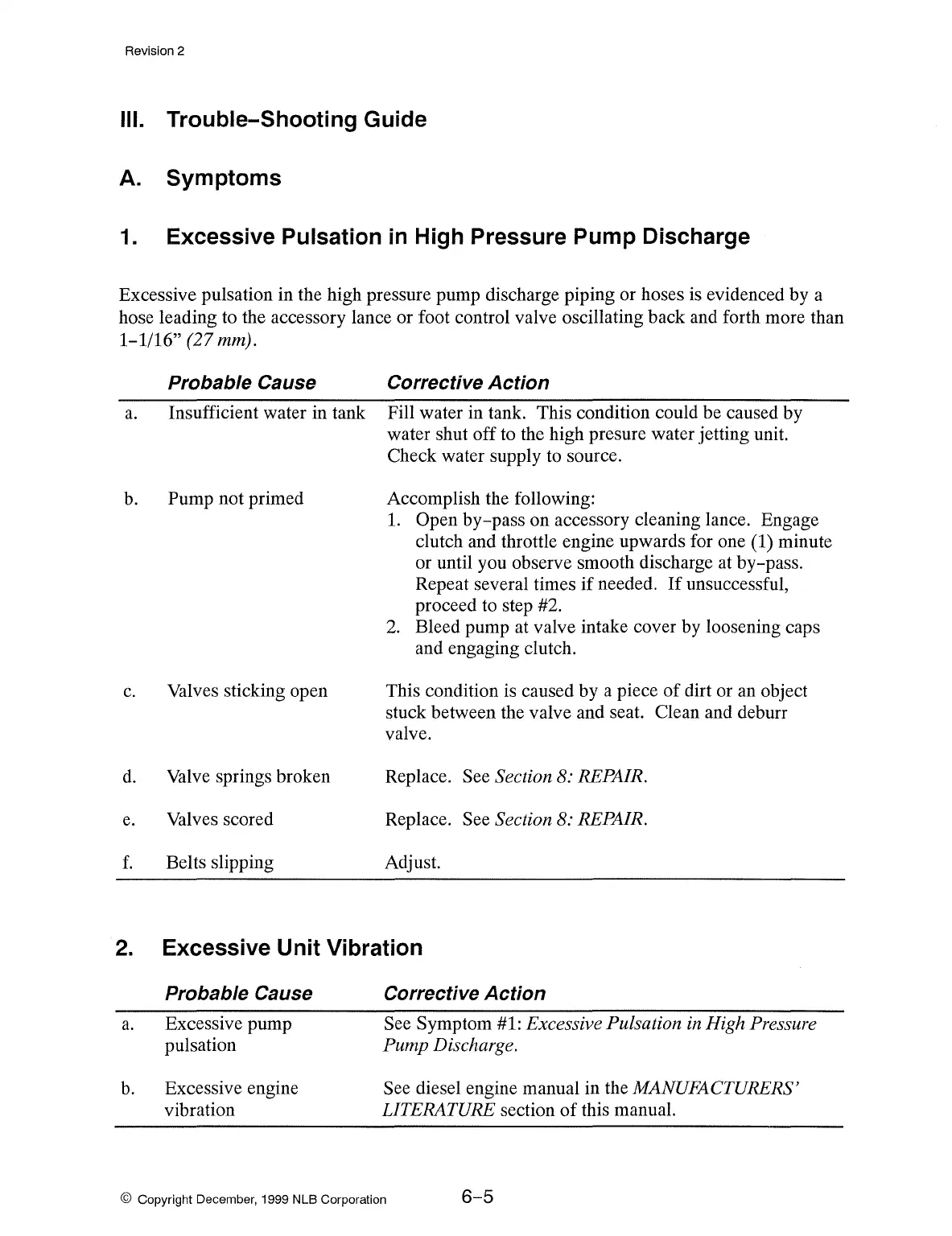 Excessive pulsation in the high pressure pump discharge piping or hoses is evidenced by a