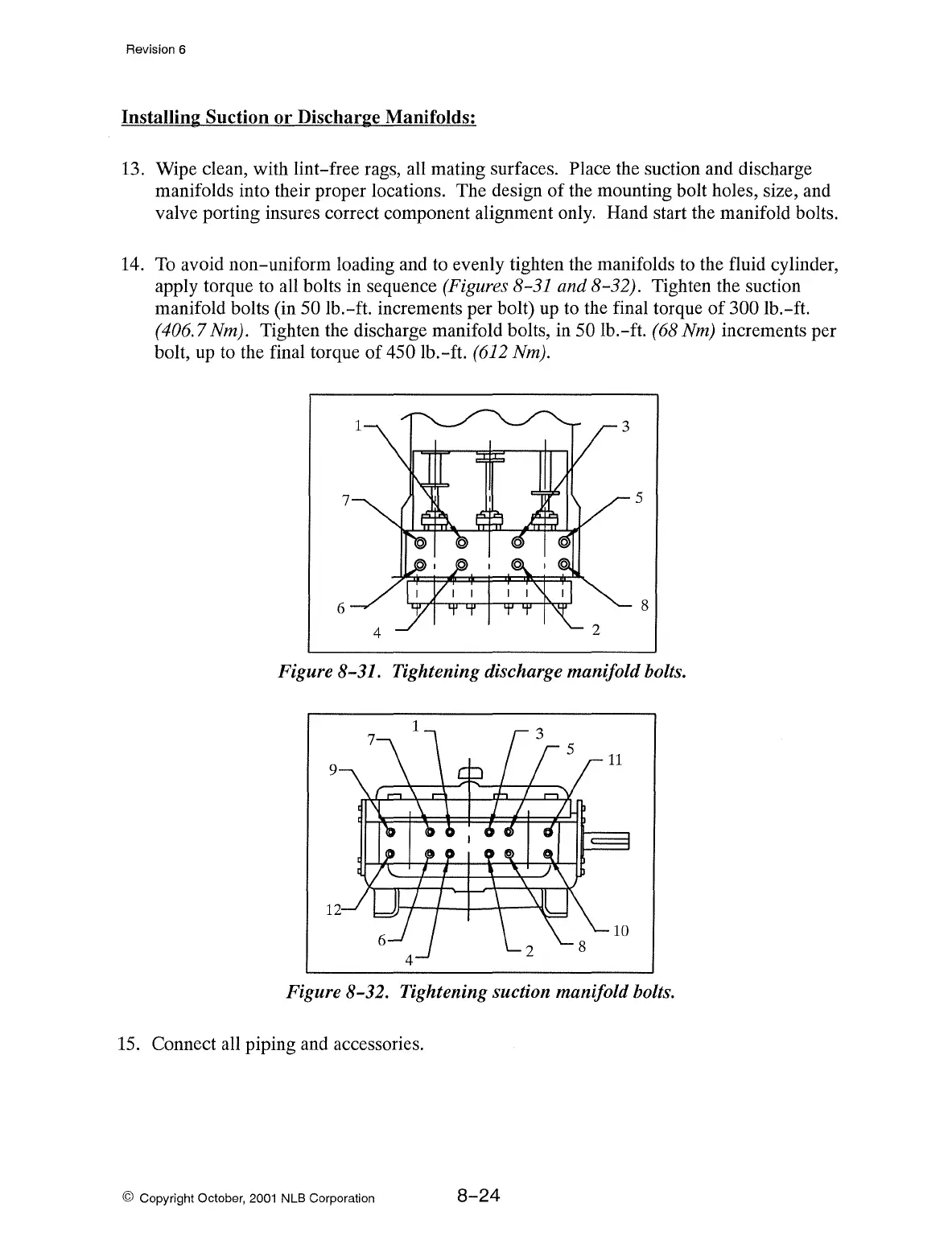 (406. 7 Nm). Tighten the discharge manifold bolts, in 50 lb.-ft. (68 Nm) increments per